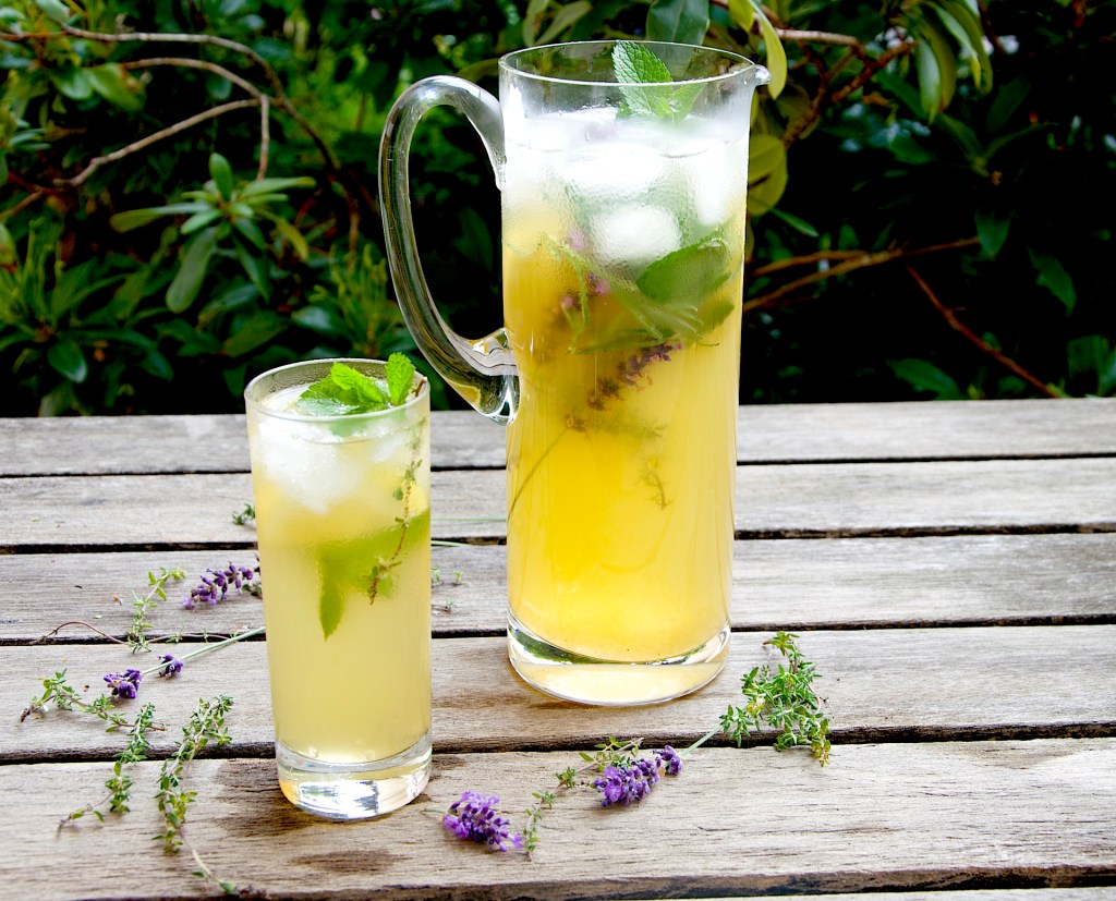 Here’s an iced tea beverage that I like to make with green tea leaves, lemon juice, honey and fresh herbs. It tastes great on a hot summer day. You can make it with green tea that comes available in individual tea bags or with loose green tea leaves. I prefer the taste of fresh loose green tea leaves, as featured above. With loose leaves, all you need is an infuser or tea filters. Enjoy!