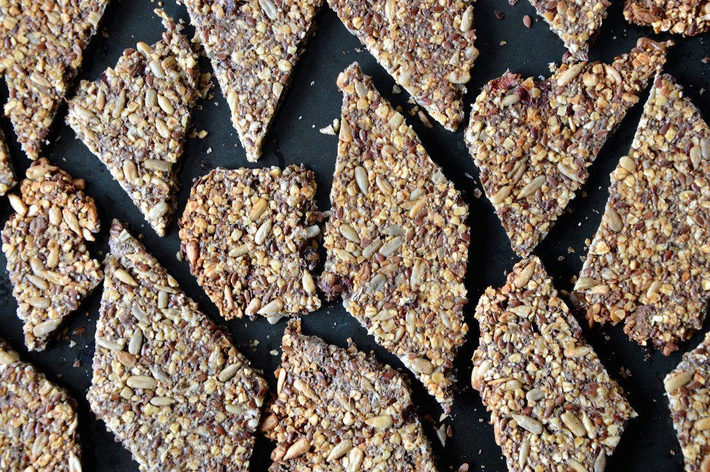 These homemade crisps are a nice change from the store-bought kind. Made with three different types of seeds, spelt flour and rolled oats, they’re good for you and are high in fibre. You can read about the health benefits of seeds here.