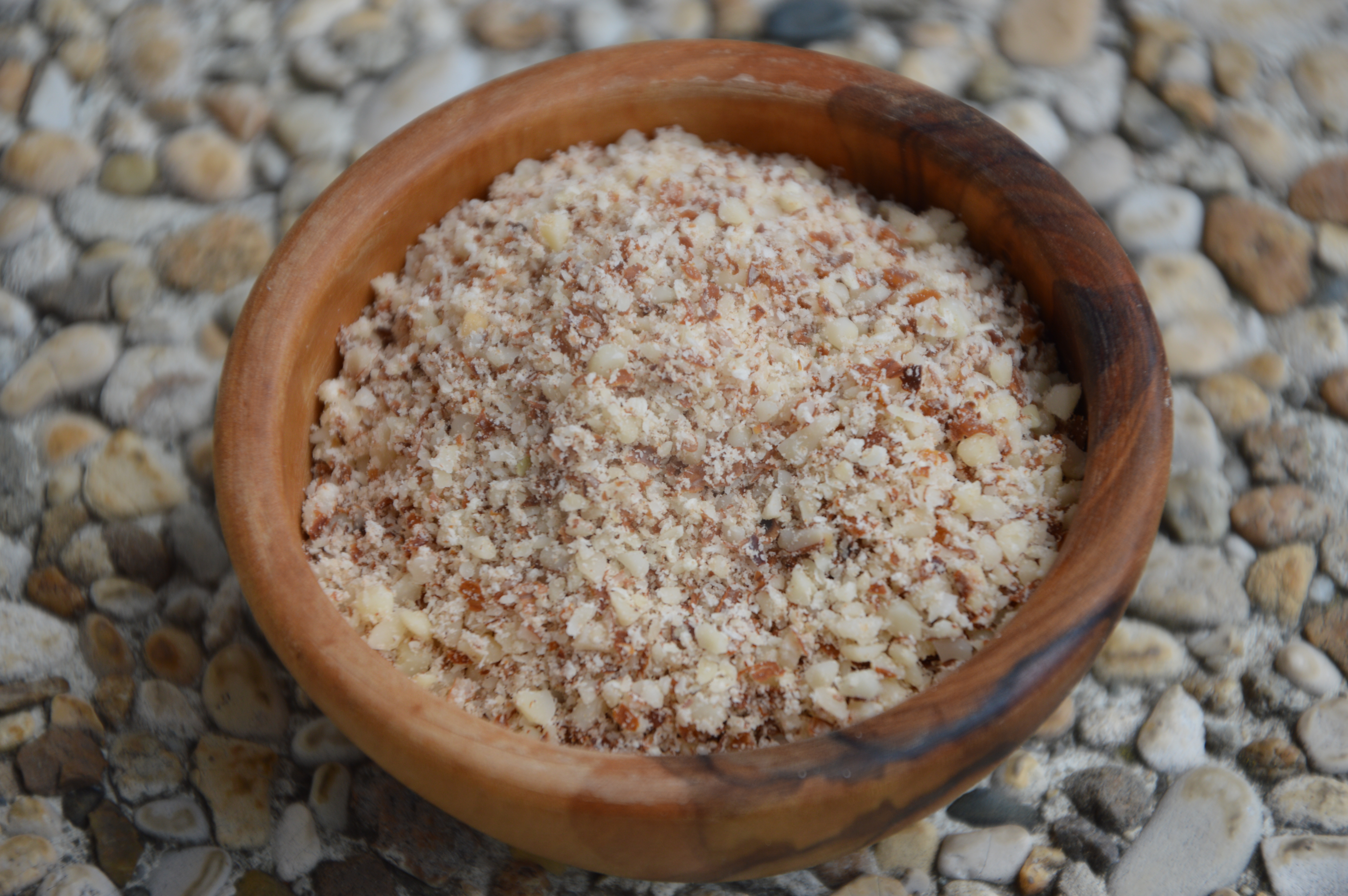 Add all ingredients in a food processor and pulse to obtain a coarse and lightly moist crumb mixture.