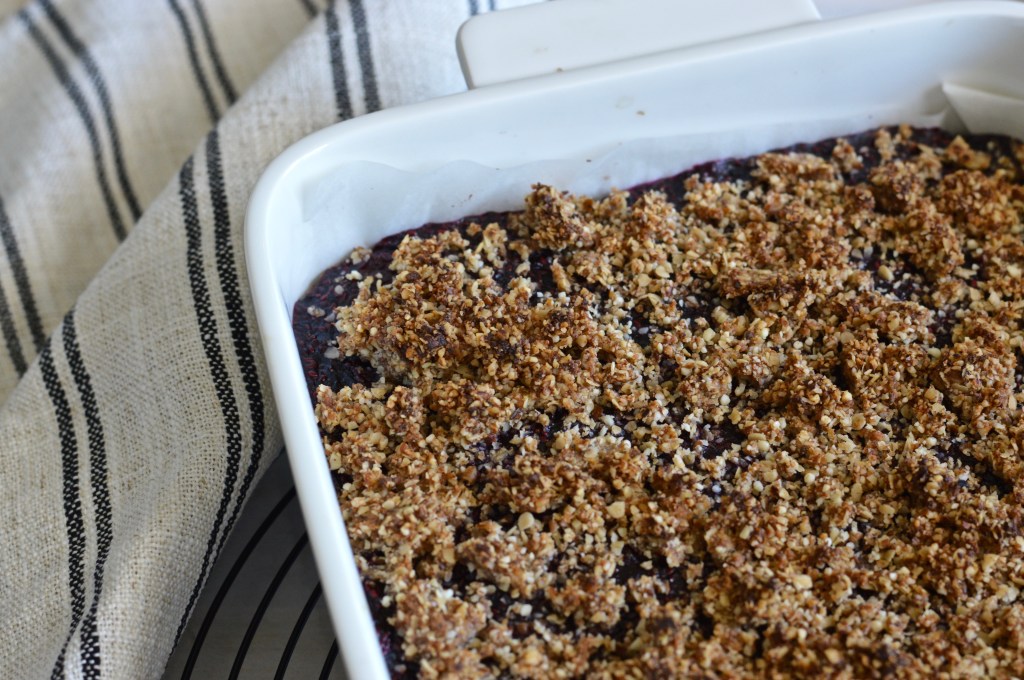 Low in granulated sugar (only 1 tablespoon!) and packed with oats, almonds, nuts, seeds and fresh fruit, it can be enjoyed for dessert with ice cream, as a mid-day snack or even at breakfast. In this recipe, I made the filling with a mix of blueberries and raspberries, but you can use any type of seasonal fresh or frozen berries or stone fruit such as peaches, cherries or plums.