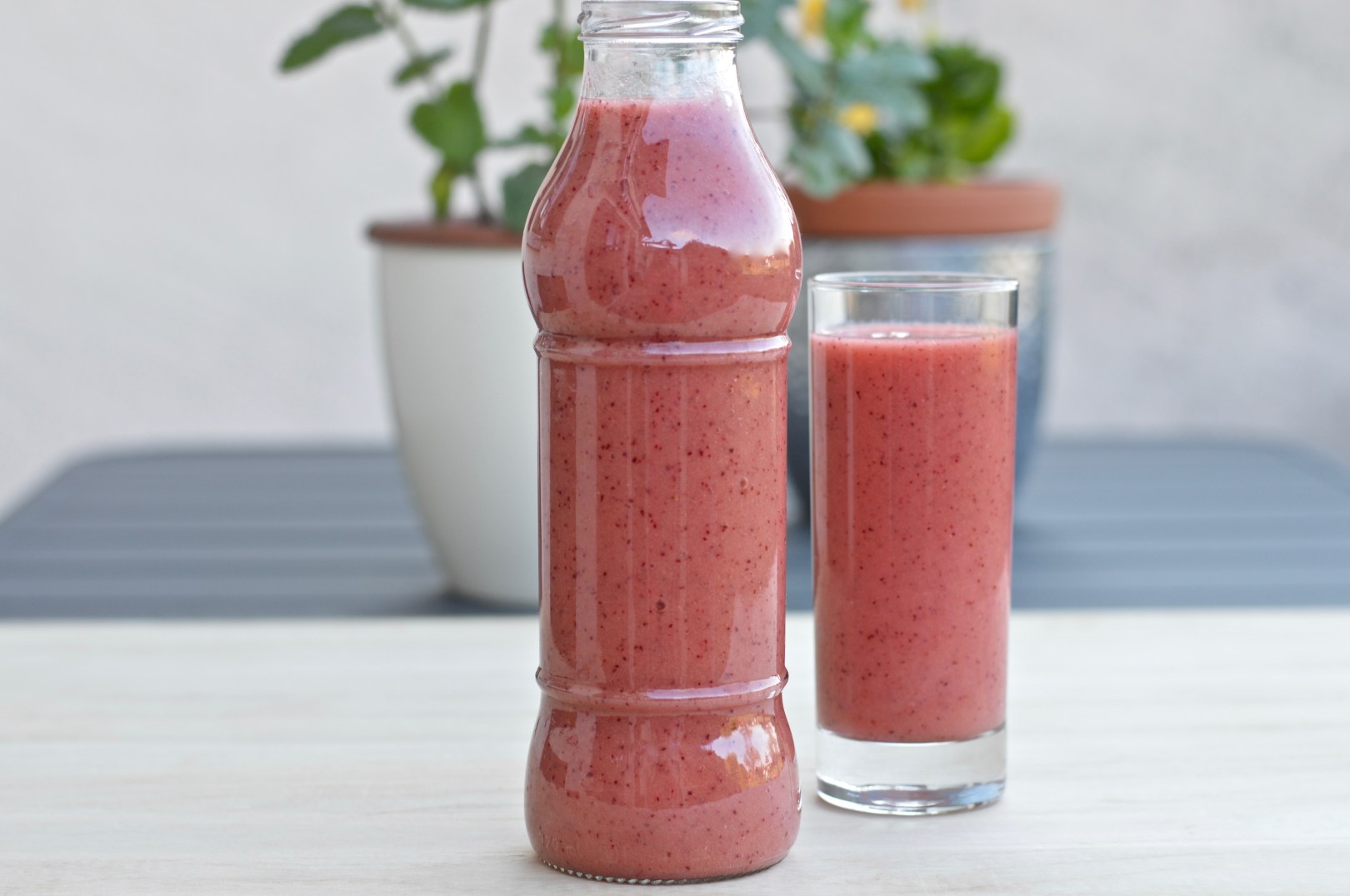 Pour leftover smoothie into a glass bottle or container with lid and keep in the fridge for one full day.