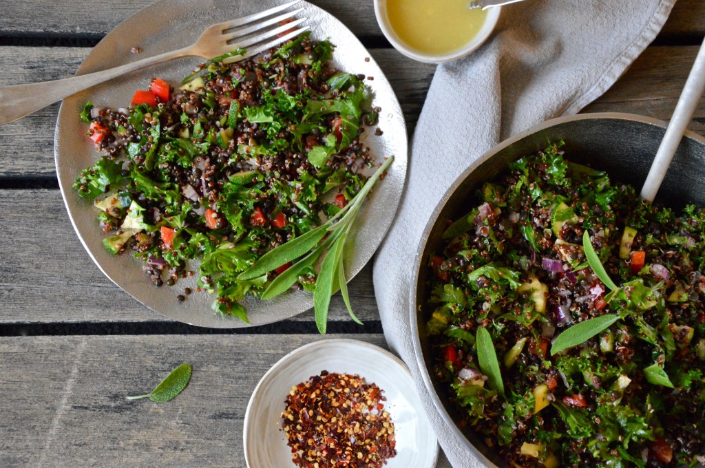 I often make a kale, quinoa and lentil salad – as a side dish or a main meal – because it is easy to put together and versatile. You can add any fresh vegetables and herbs that you like. One dish will give you all the nutrients in the kale plus the protein and iron from the quinoa and lentils.
