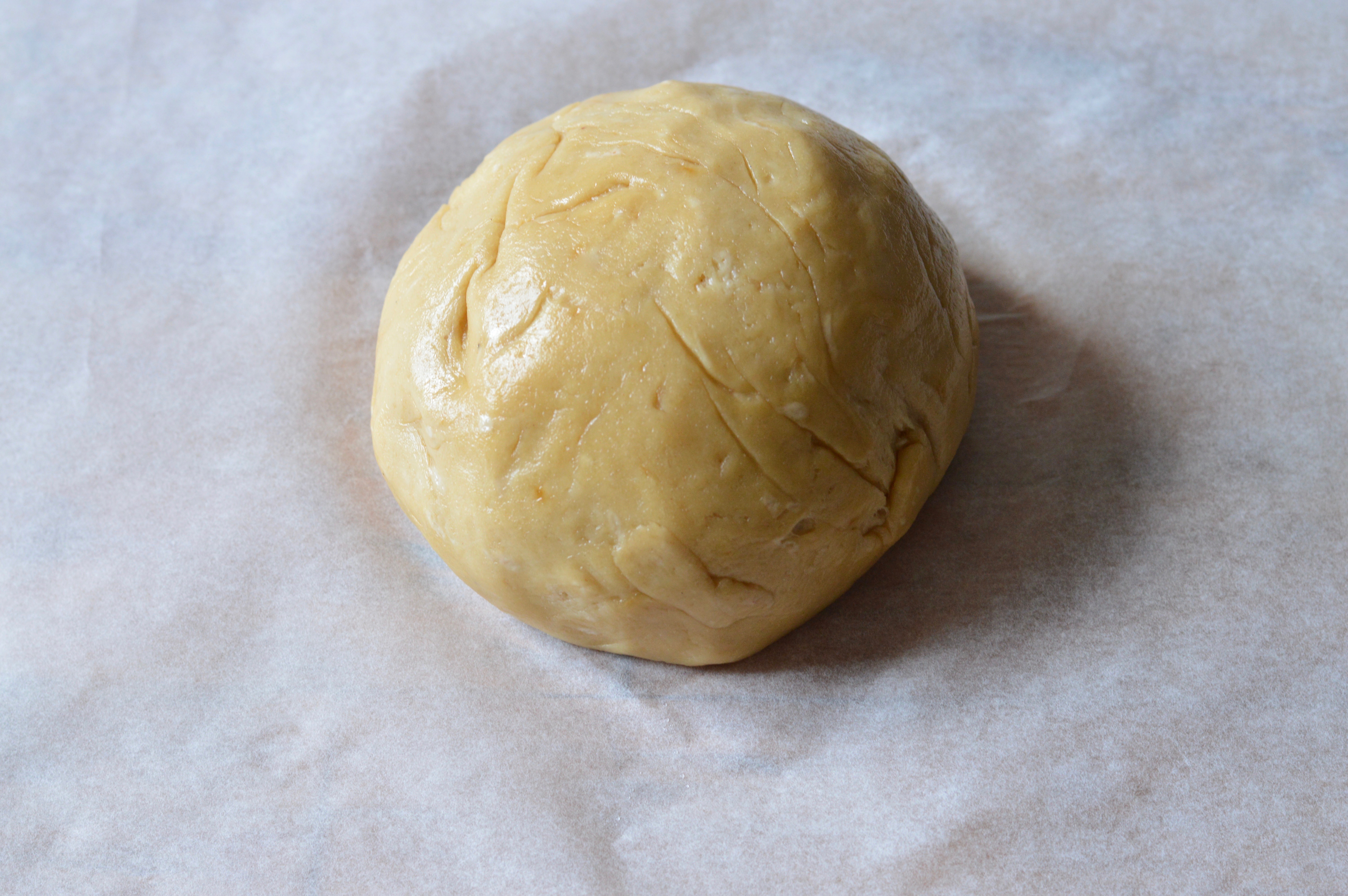 Gather all of the dough with floured hands and form a round ball. It will feel soft and tender. Wrap the ball with a piece of parchment paper that is about 32cm or 14 inches in diameter (you will use this paper for rolling out the dough later). Chill the dough ball in the fridge for at least 30 minutes.