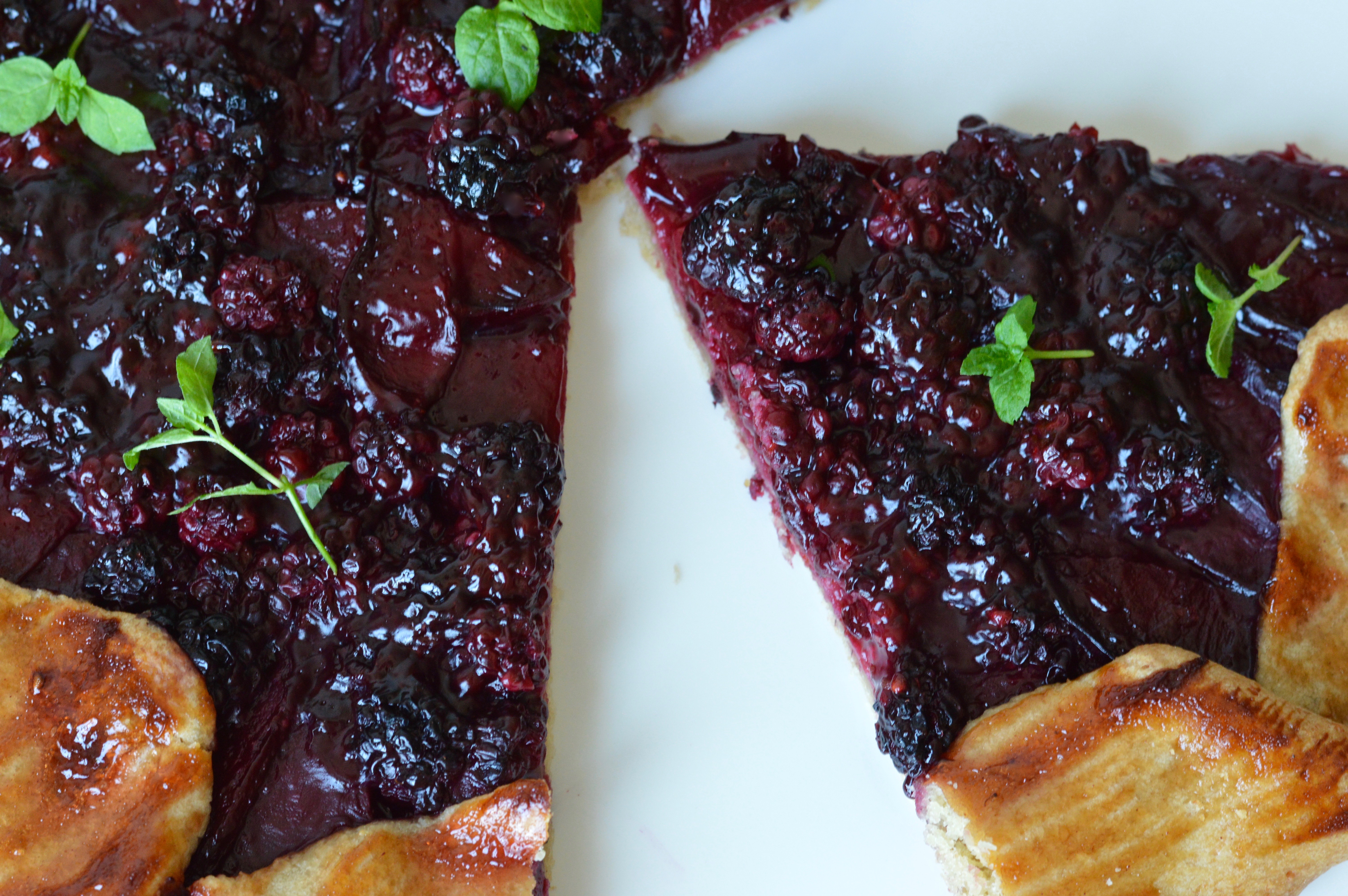 Berries and fall fruits, such as plums, peaches and apples are great to have on board when making pies or galettes. Last week, I decided to make some French galettes with a blend of white spelt and almond flours, some plant-based butter, a bit of coconut sugar and lots of fresh seasonal fruit. Featured above, is a wild blackberry and plum galette.