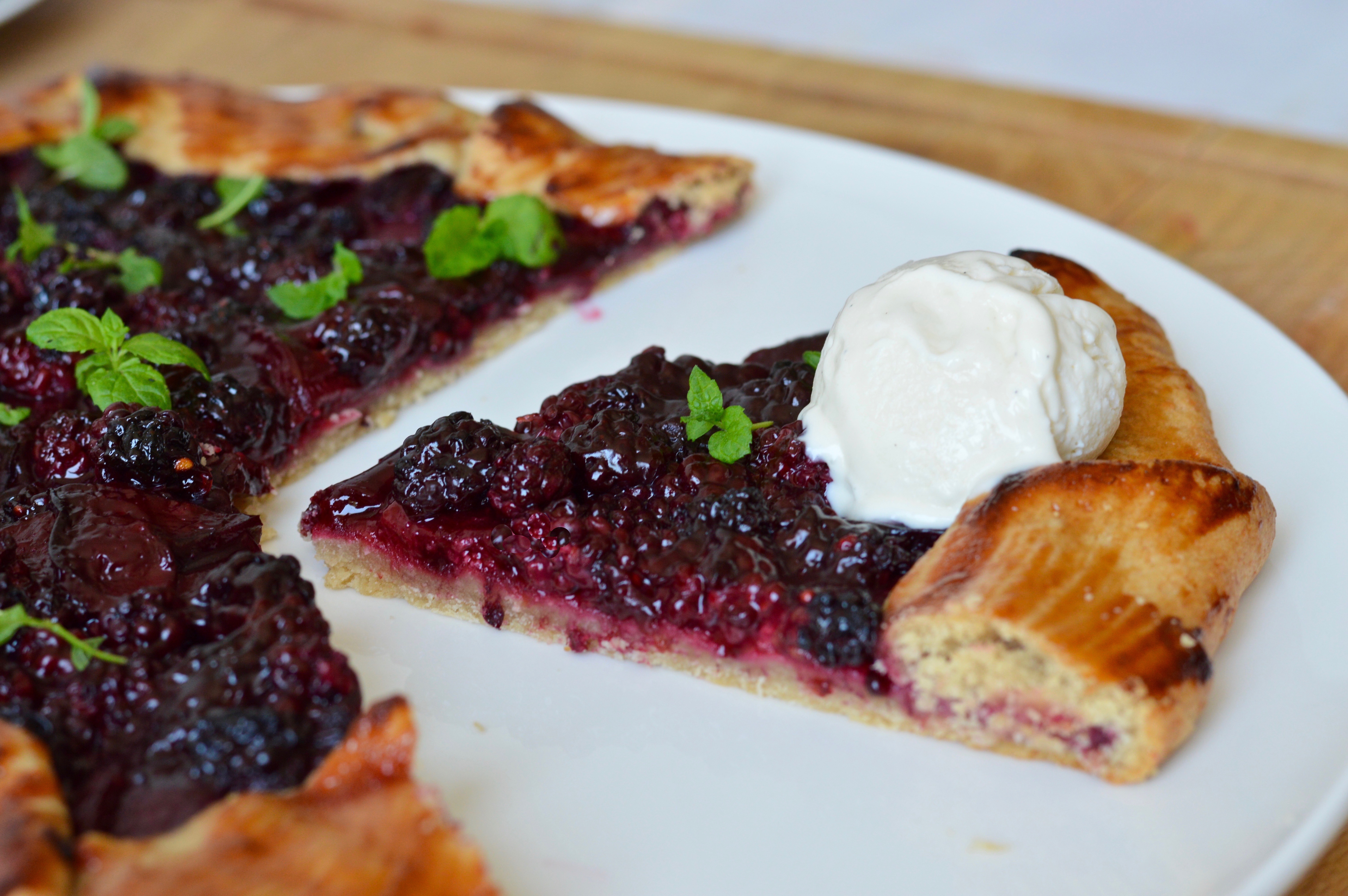 When cooled, slice and serve as is or with a scoop of vanilla ice cream. Place leftover galette on a large plate, cover with foil or a large bowl turned upside down and store in the refrigerator. It keeps well for a few days.