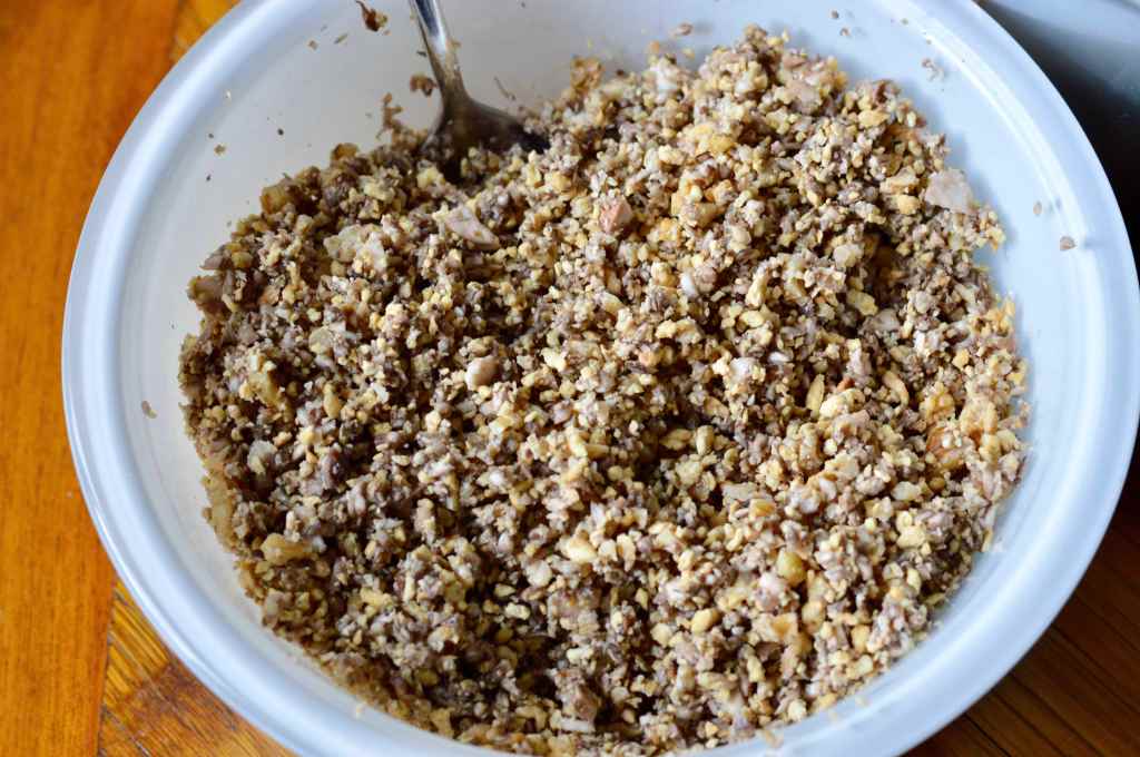 5. Transfer the hydrated TVP to the mushroom & walnut mixture. Mix with a fork and set aside.