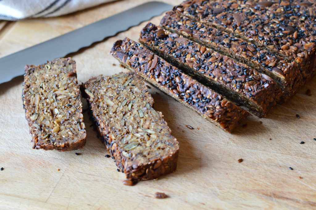Made without flour or leavening, the dough bakes into a dense loaf that holds perfectly together. Packed with protein, fibre and healthy fats, it is hearty and nutritious.