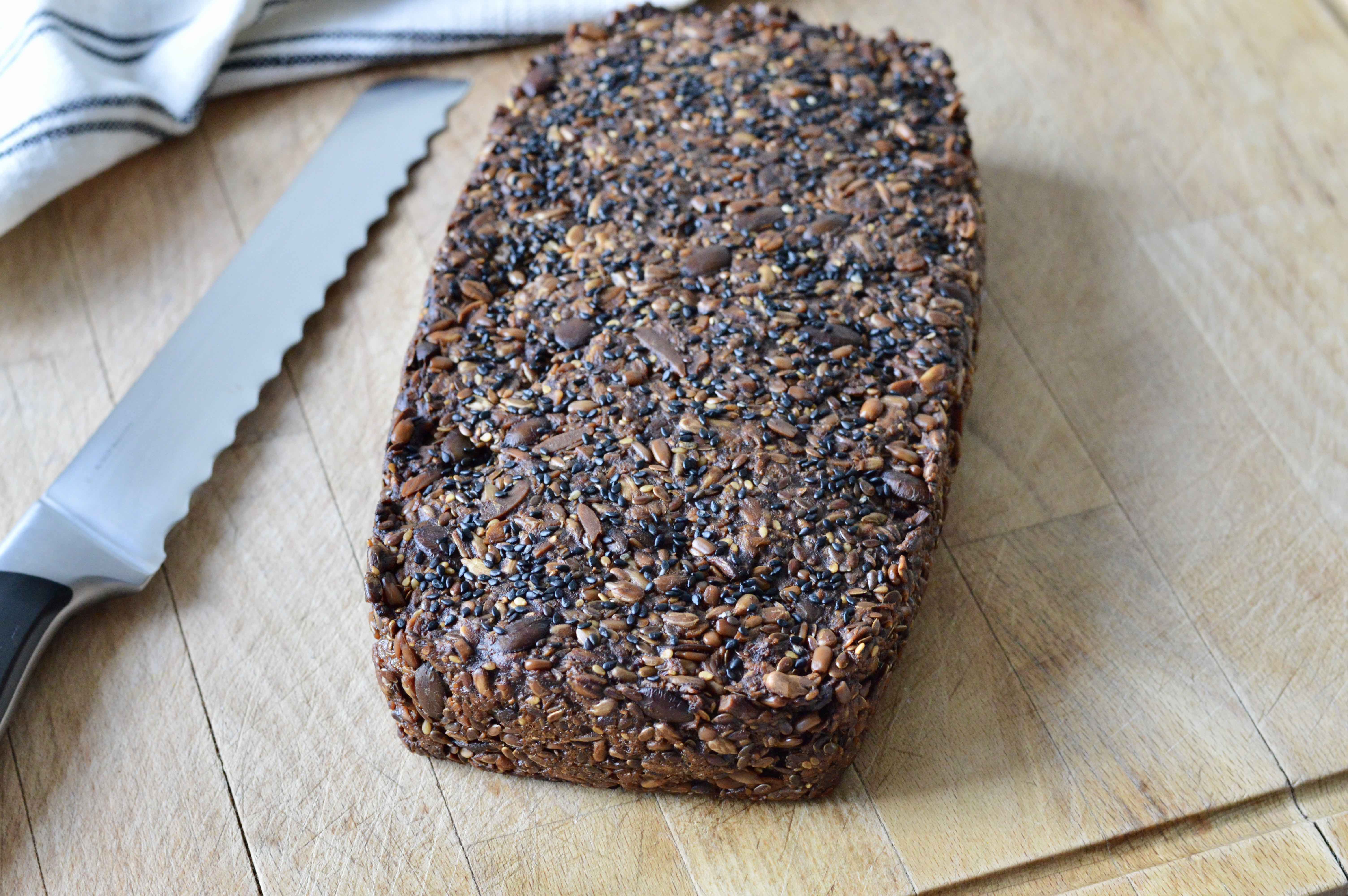 Made without flour or leavening, the dough bakes into a dense loaf that holds perfectly together. Packed with protein, fibre and healthy fats, it is hearty and nutritious.