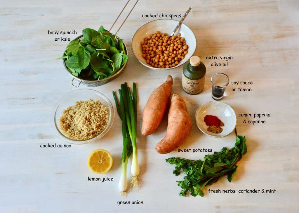 - 2 cups cooked quinoa (I used the white/yellowish kind)
