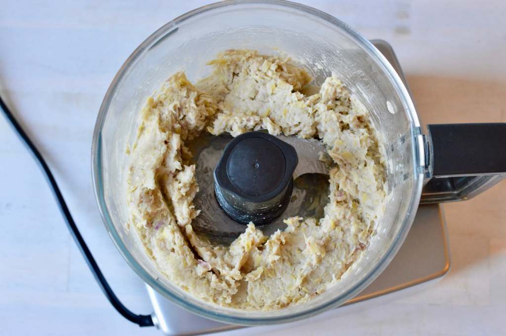 2. Meanwhile, transfer the drained and rinsed beans and artichokes into your food processor bowl and process until semi-creamy, stopping and scraping down sides a few times. This takes less than a minute.