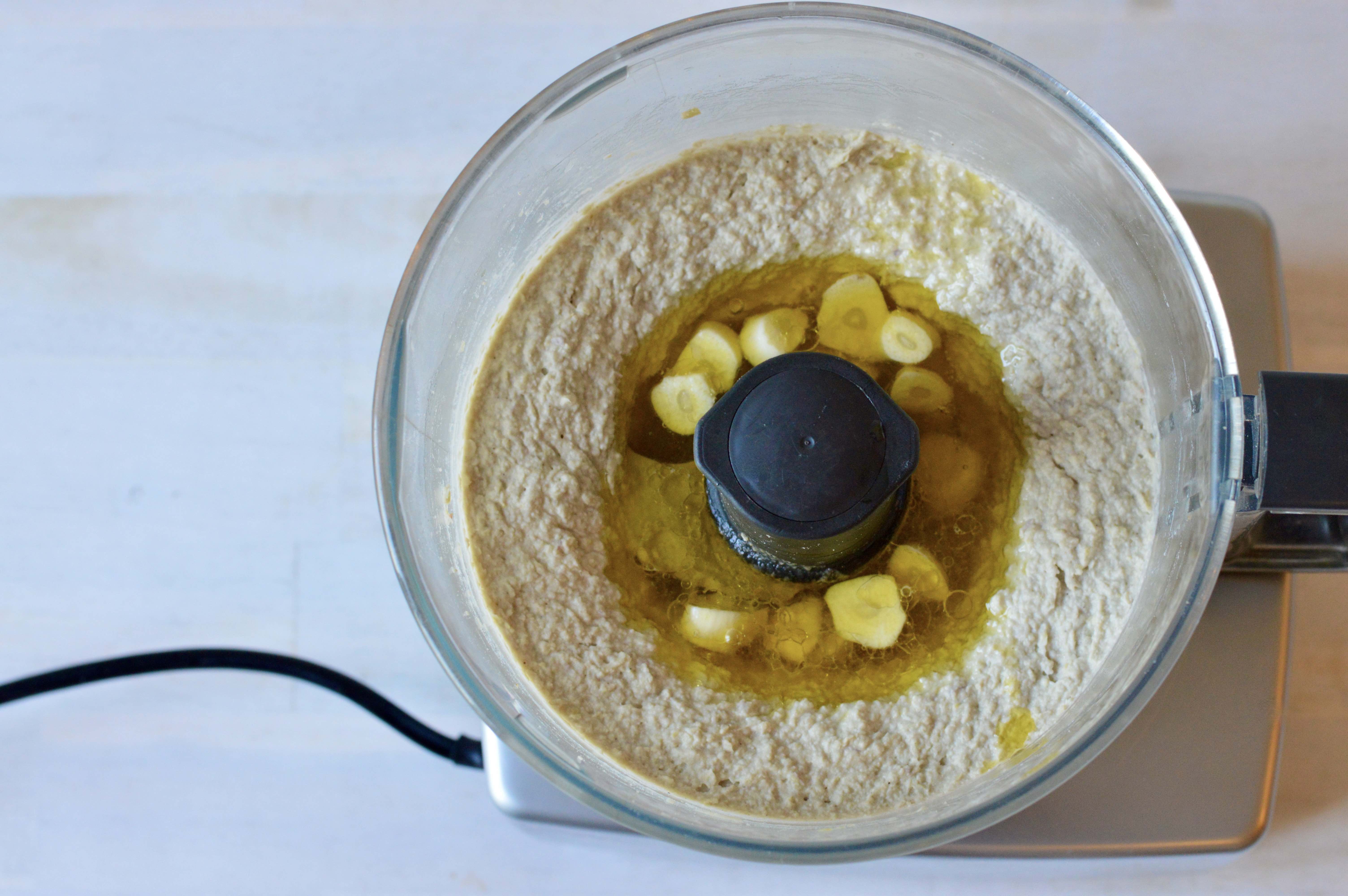 3. Add the tahini and process for half a minute or so, stopping and scraping the sides a few times until combined.