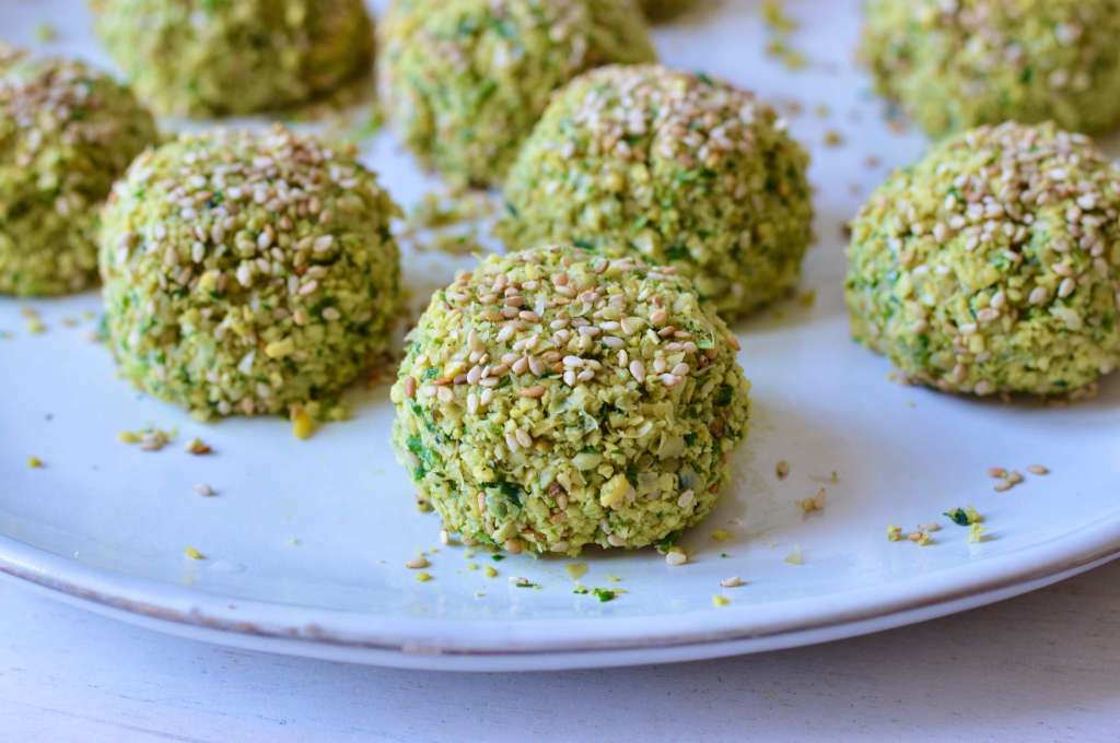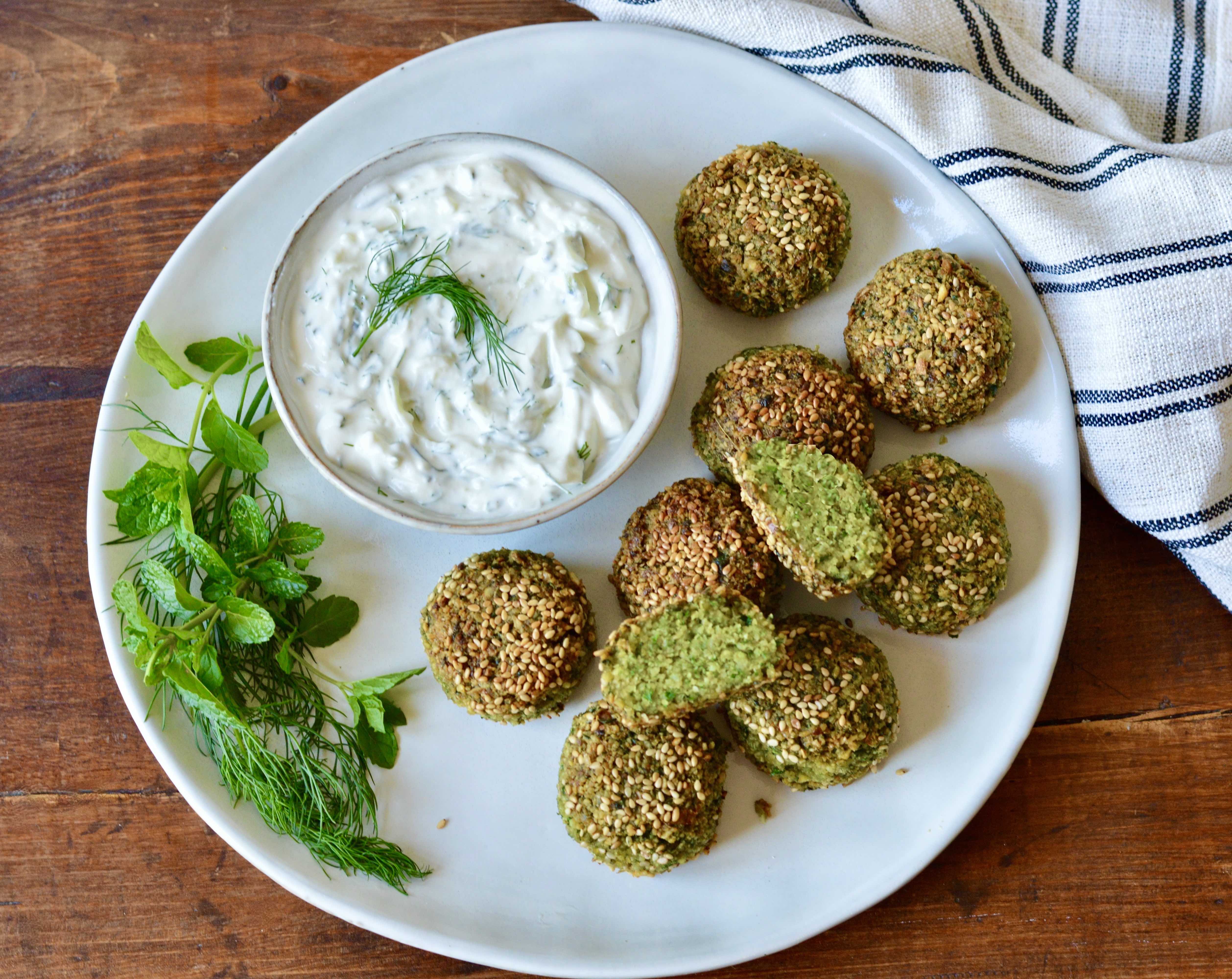 I made these Fresh Green Falafels with fresh spinach, coriander, parsley, dill weed, mint, green onions and warm peppery spices. Crunchy on the outside; tender and vibrant green on the inside, each ball is packed with flavour and wholesome nutrition.