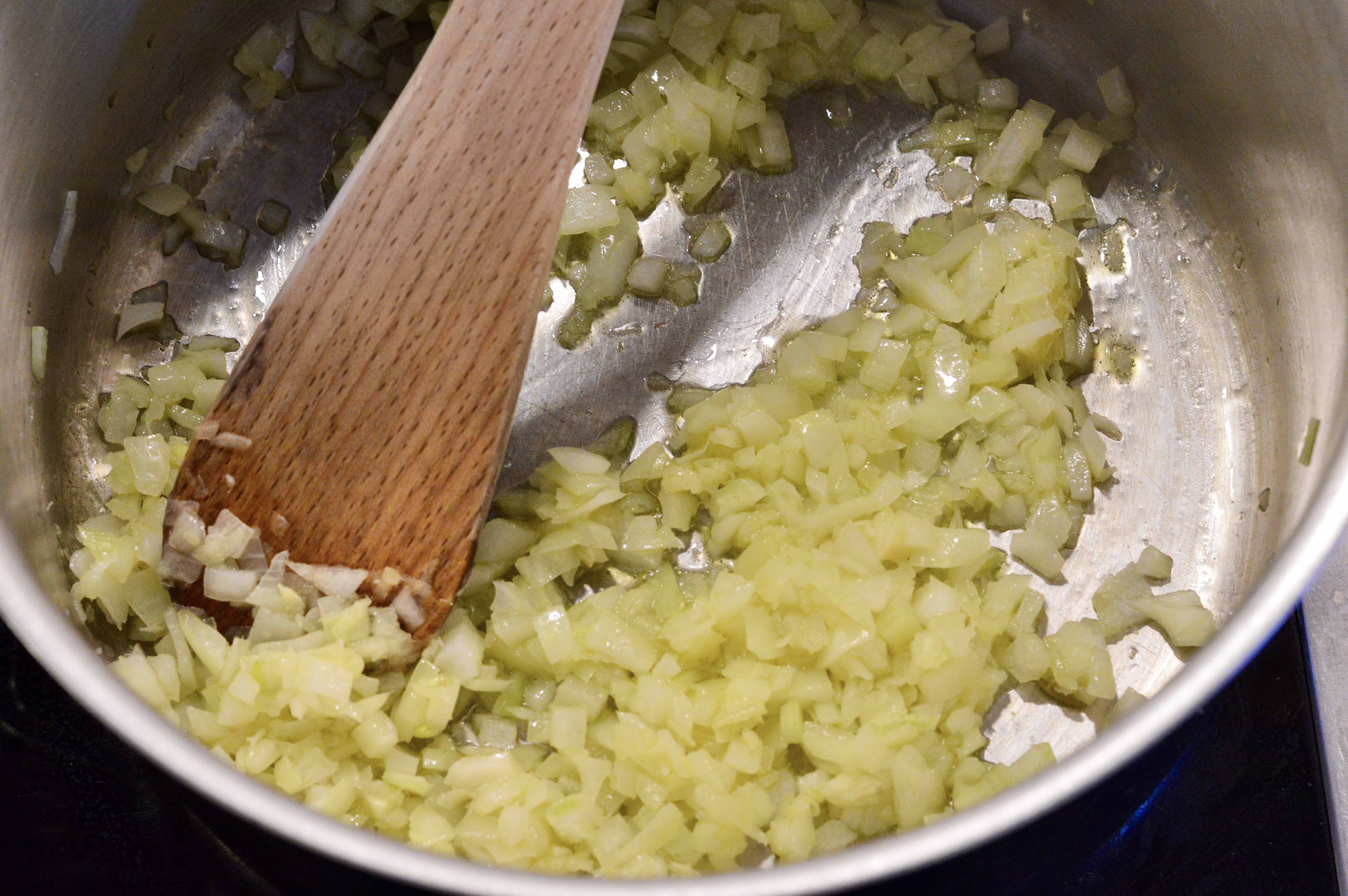 2. Add the onion and garlic and cook for 2 minutes to soften.