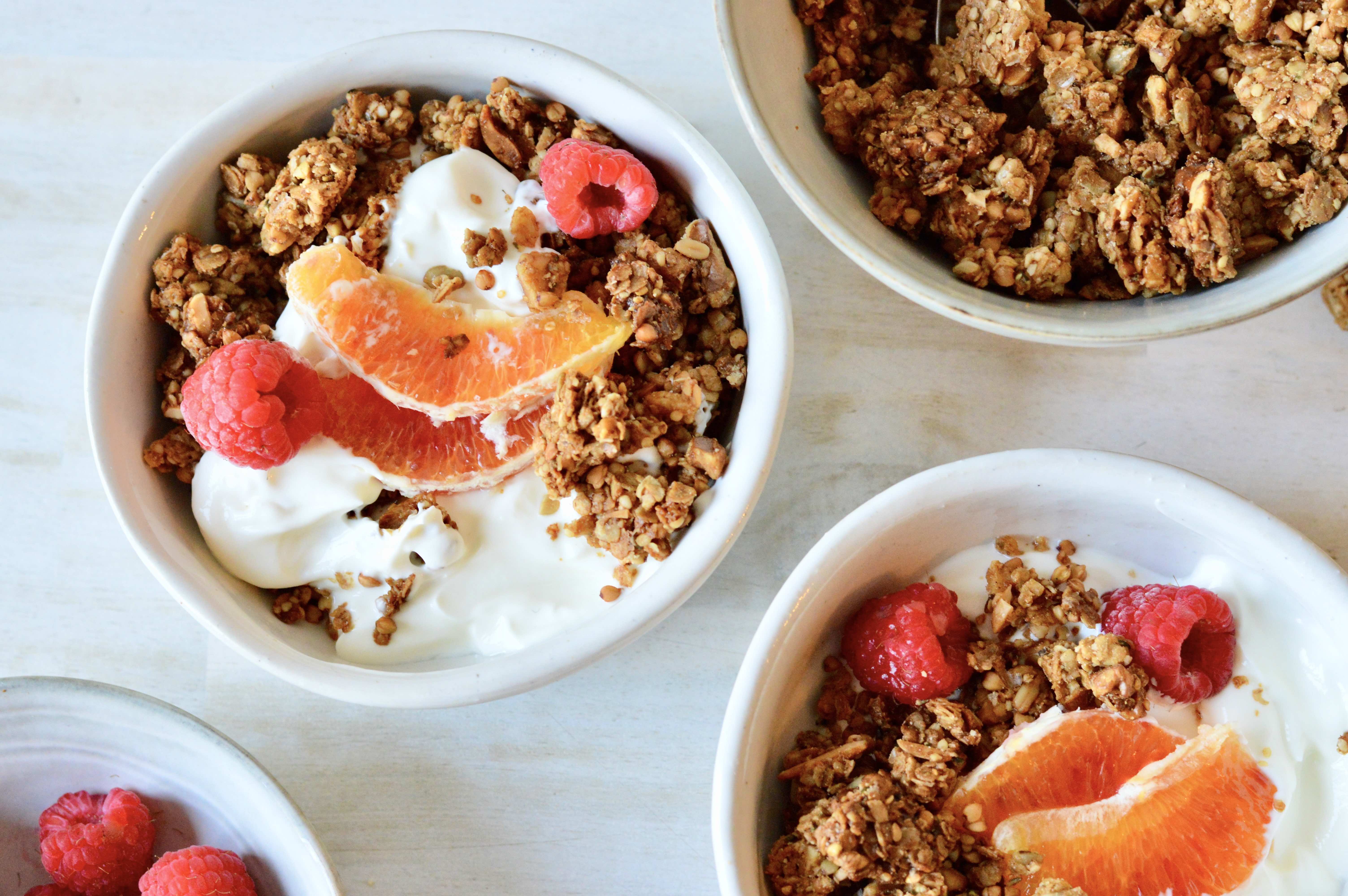 Introducing my breakfast creation: Buckwheat Hemp Granola — a gluten-free powerhouse packed with crunch, flavour and all kinds of healthy benefits. High in fibre, protein and antioxidants, it’s the perfect breakfast meal when paired with Greek yoghurt (or milk) and fruit. It can also be enjoyed straight from the jar, or as a topping on smoothie bowls, fruit cups or chia puddings.