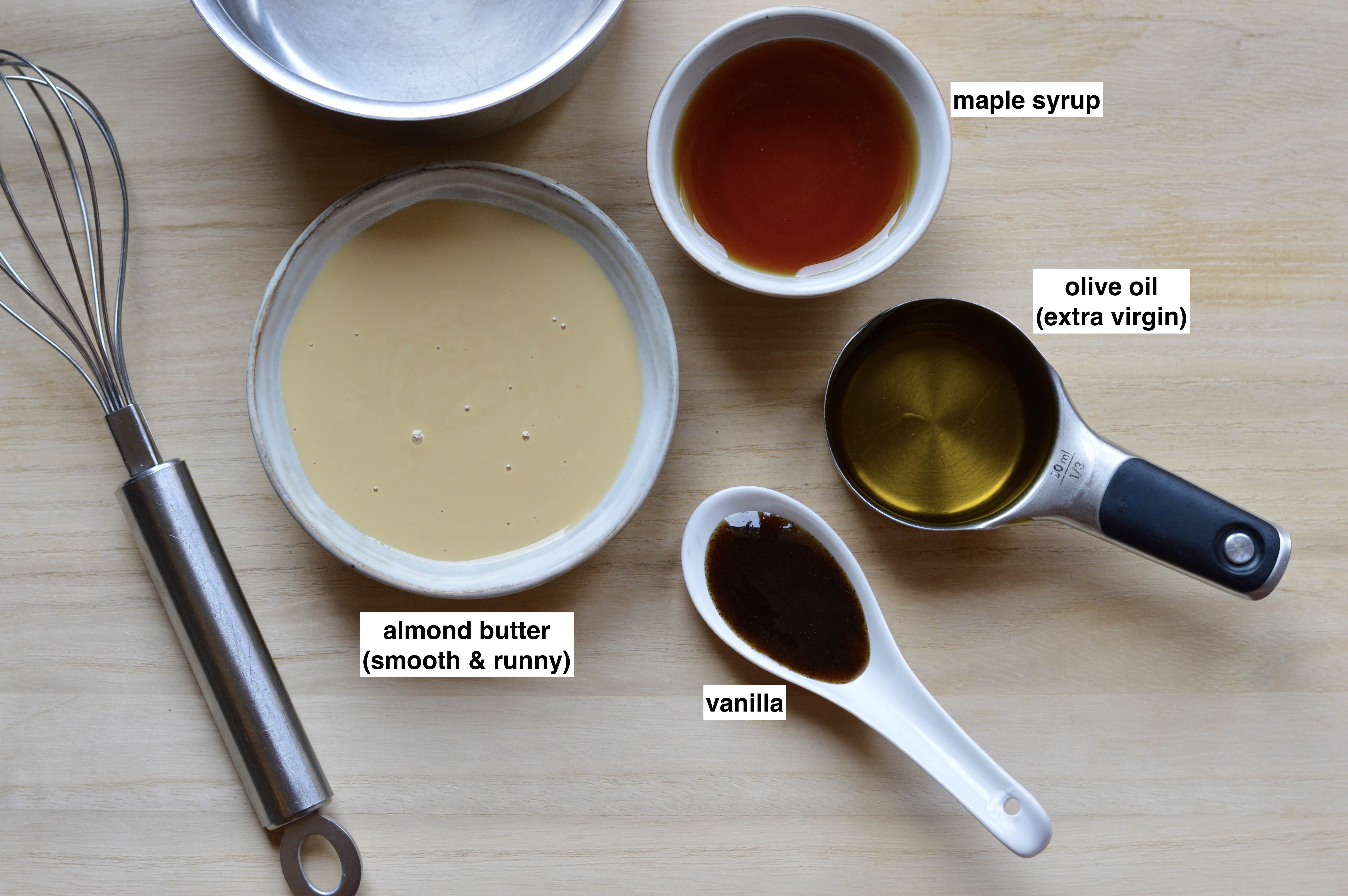 - 1/3 cup (85 gr) nut butter (e.g. almond, cashew or peanut), a smooth & runny kind stirred before measuring — I used a bio almond butter *see note