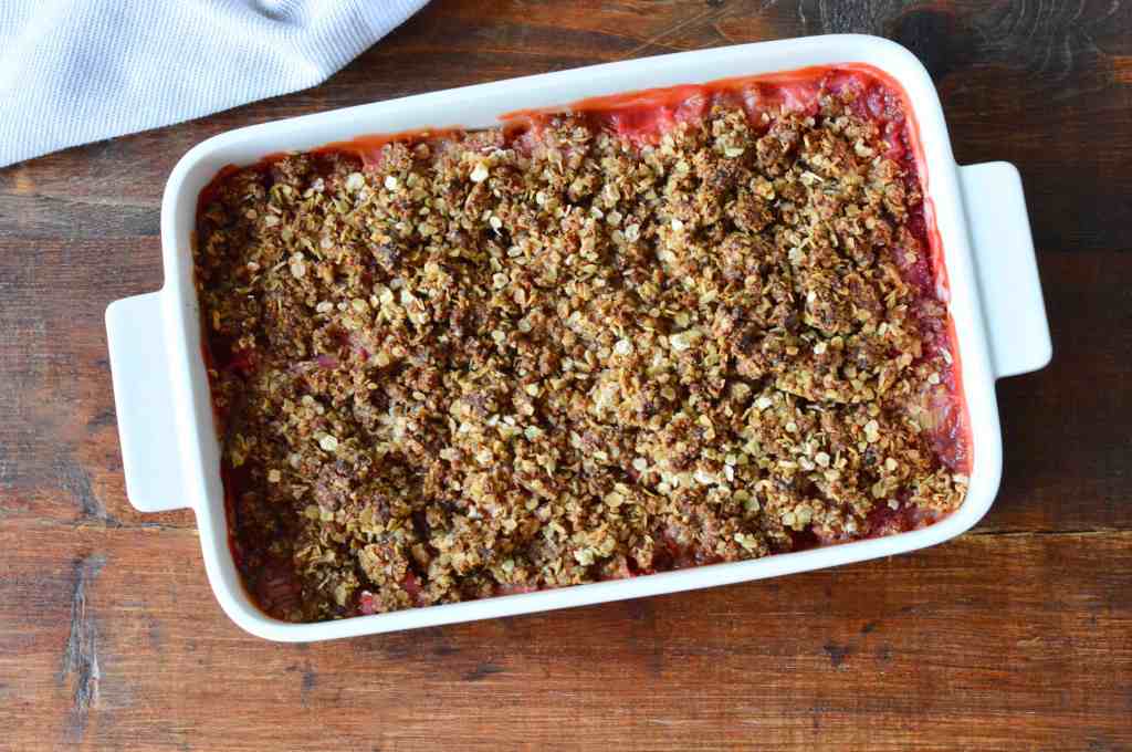 Since spring came early and there’s already plenty of fresh rhubarb in supermarkets, I’ve been making this strawberry rhubarb crumble for the past three weeks.