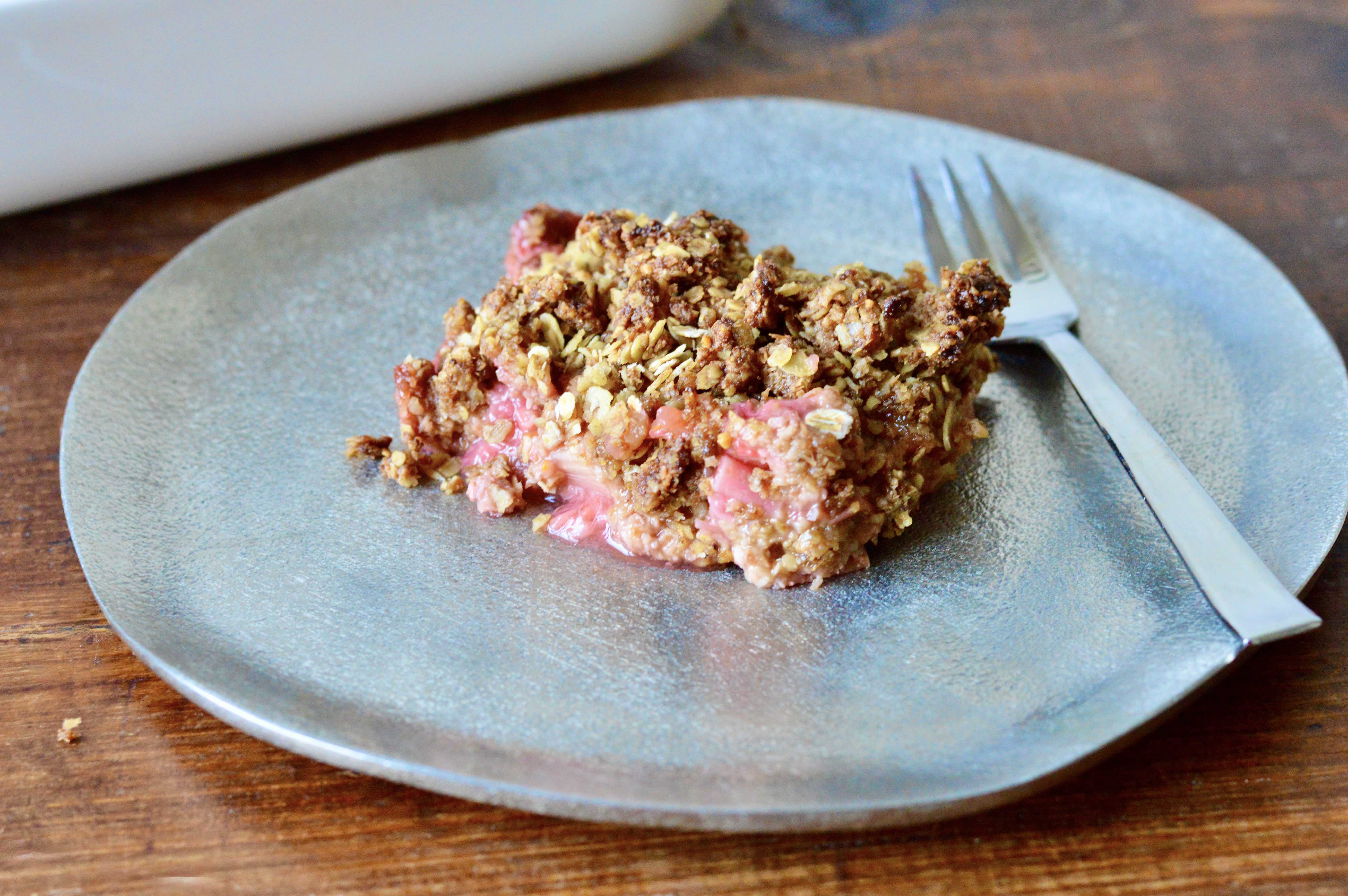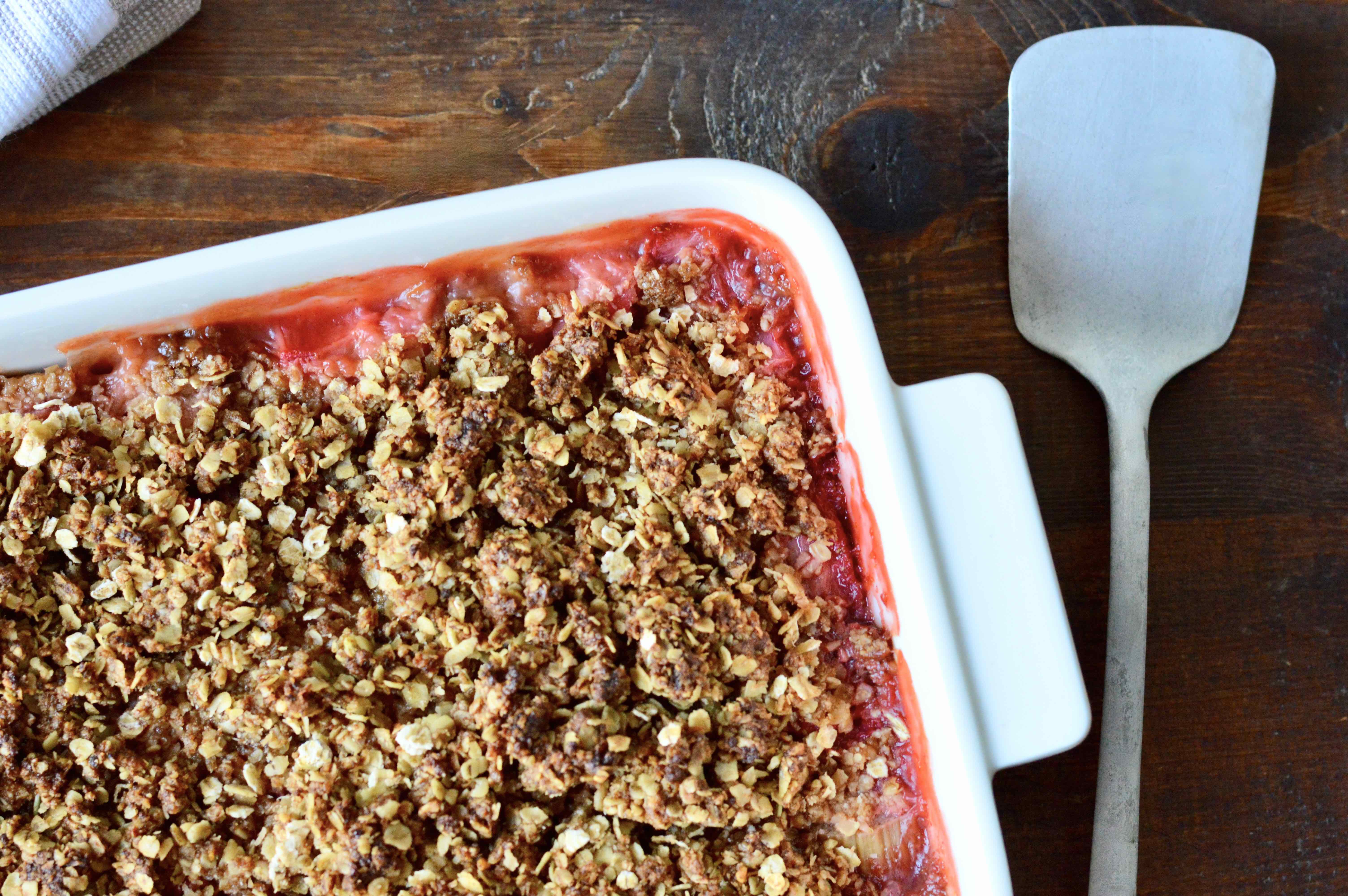 Since spring came early and there’s already plenty of fresh rhubarb in supermarkets, I’ve been making this strawberry rhubarb crumble for the past three weeks.