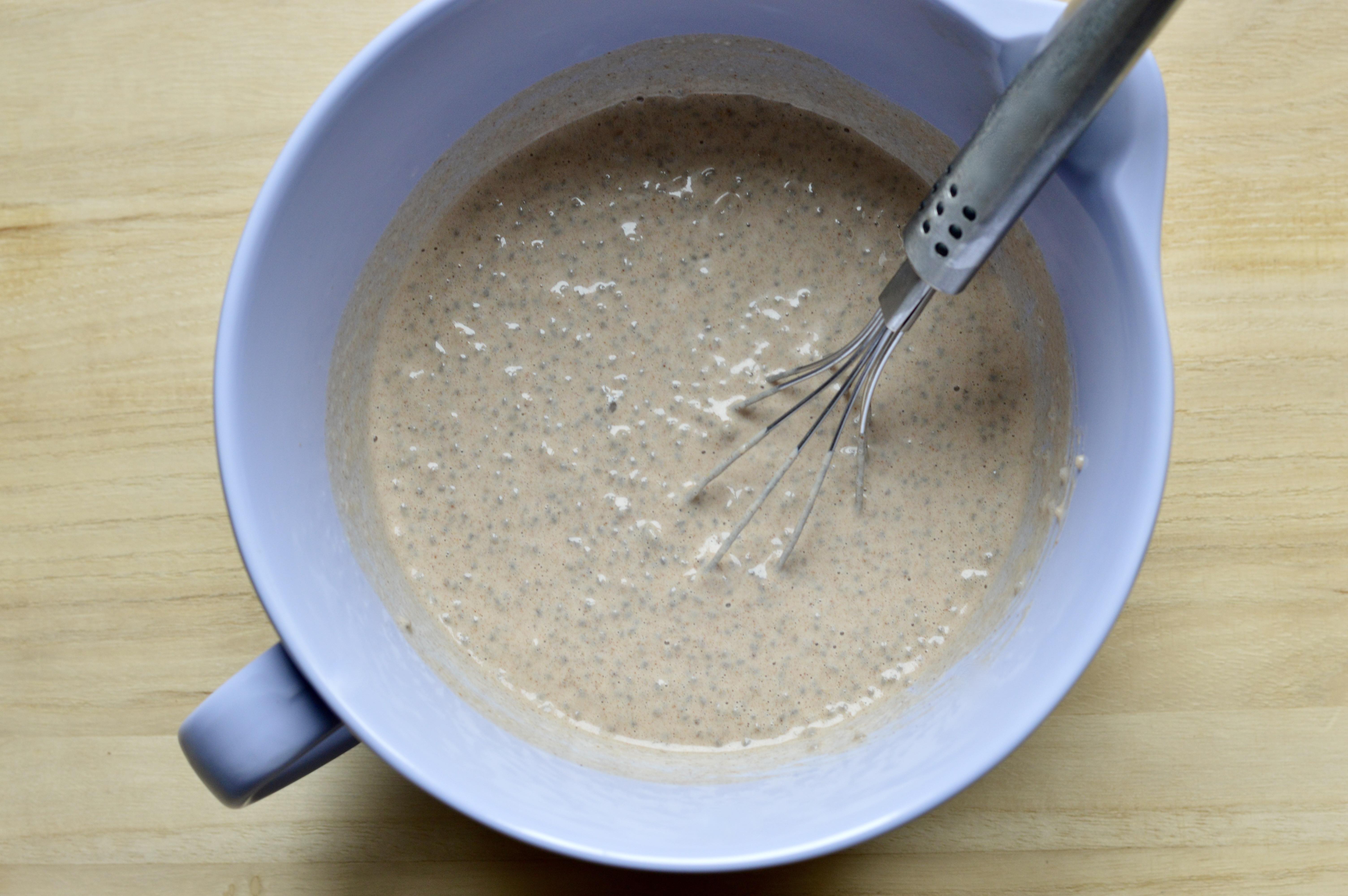 3. Transfer the chia seeds into a medium-size bowl. Then pour the creamy mixture on top of the seeds and immediately whisk to combine.