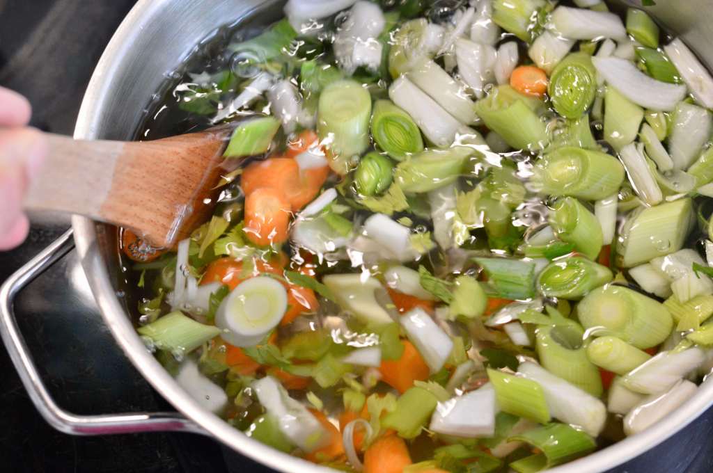 * Note: Don’t add any salt or pepper or other spices or herbs because these will be added to the recipe you will be making with the stock.