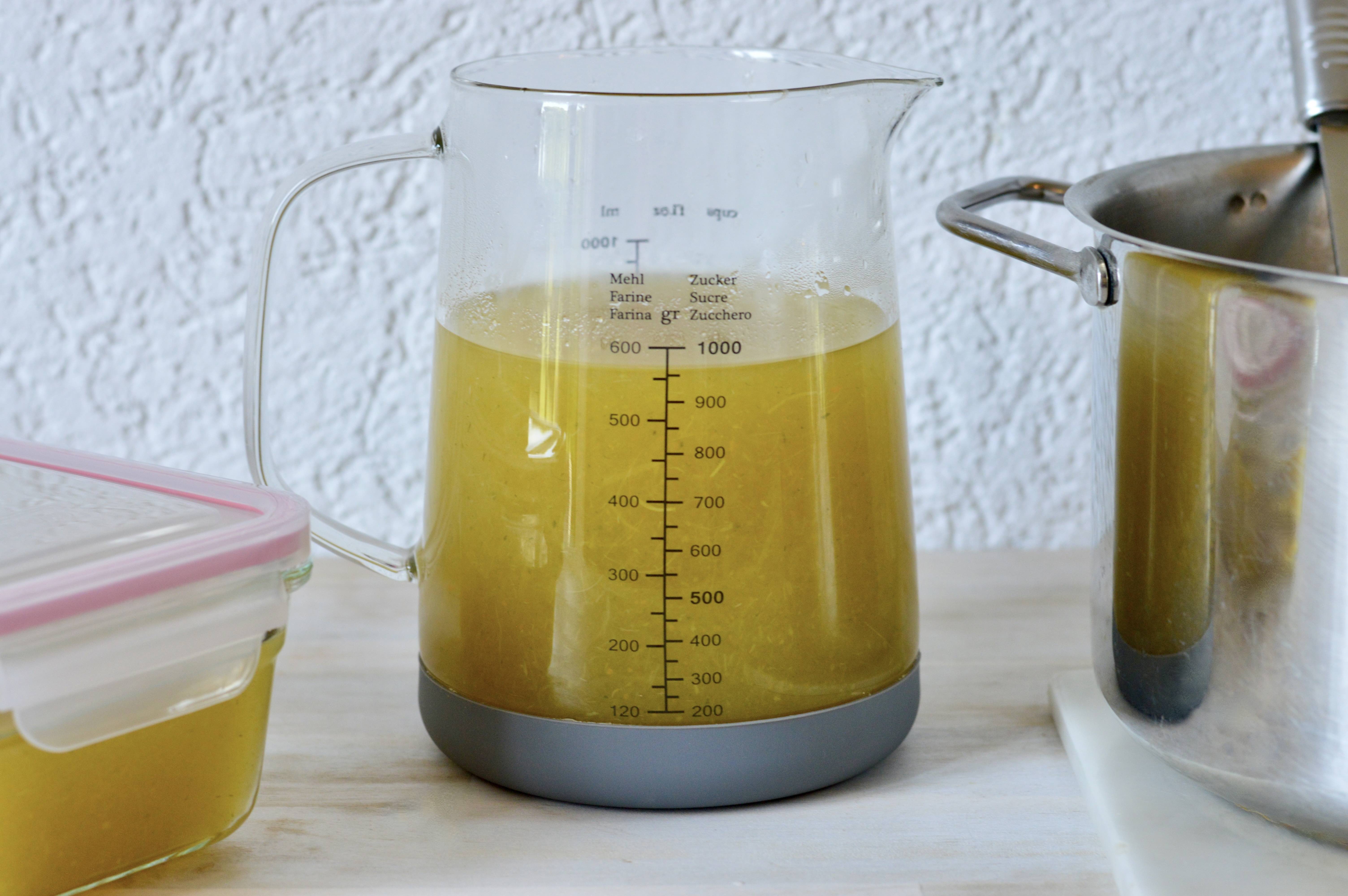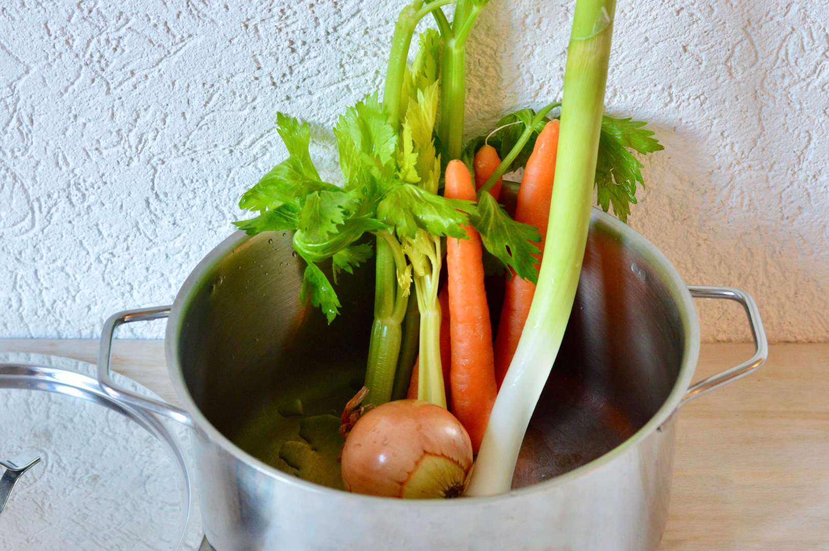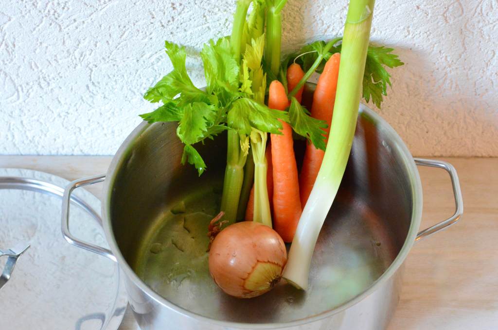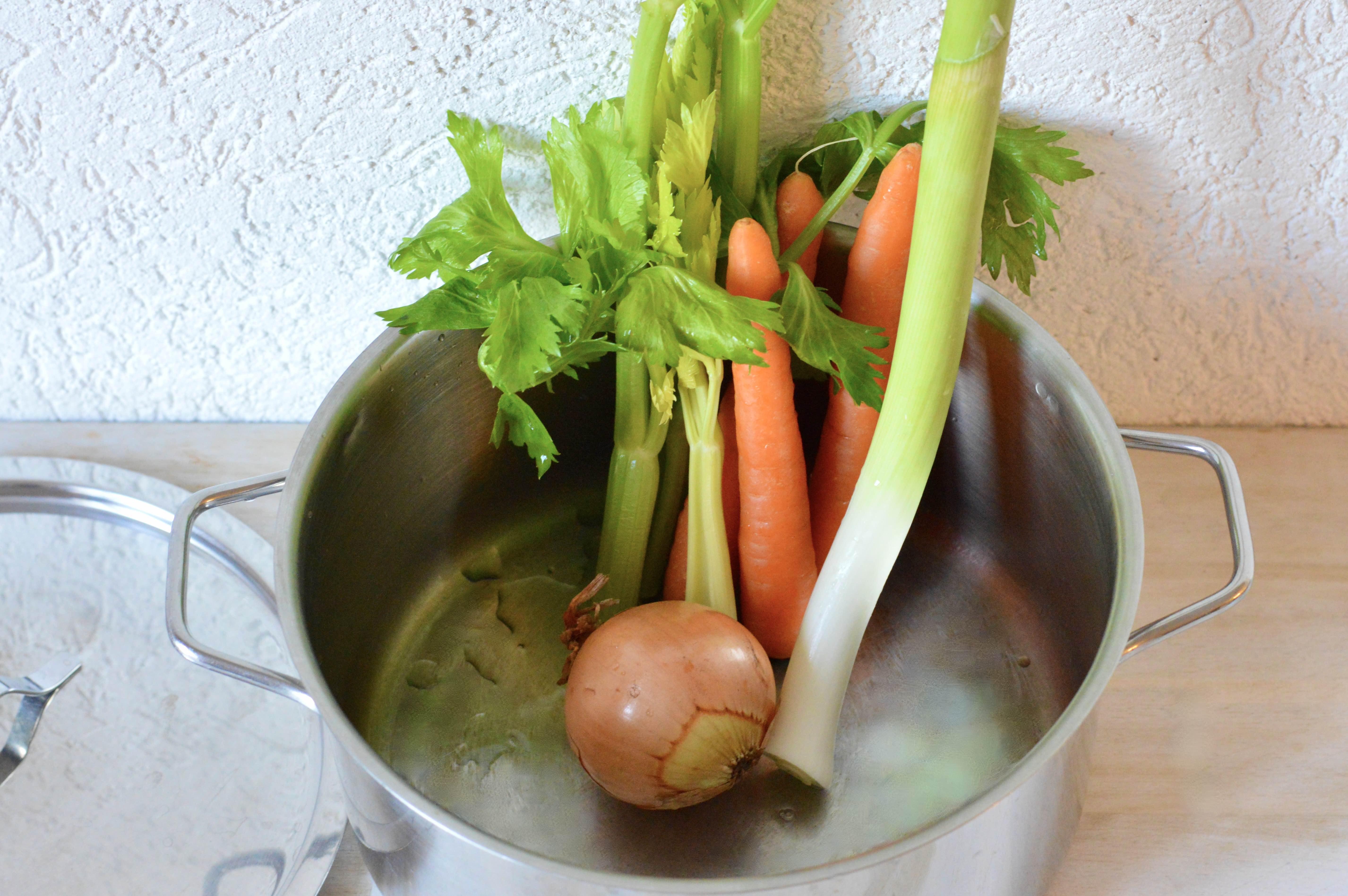 Best of all, it’s a no-brainer to make! 🙂 All you need are a few basic root vegetables, such as carrots, celery (or celeriac), onion and/ or leek and water. The main pieces of equipment are a handheld blender, a big pot and some containers for storage.