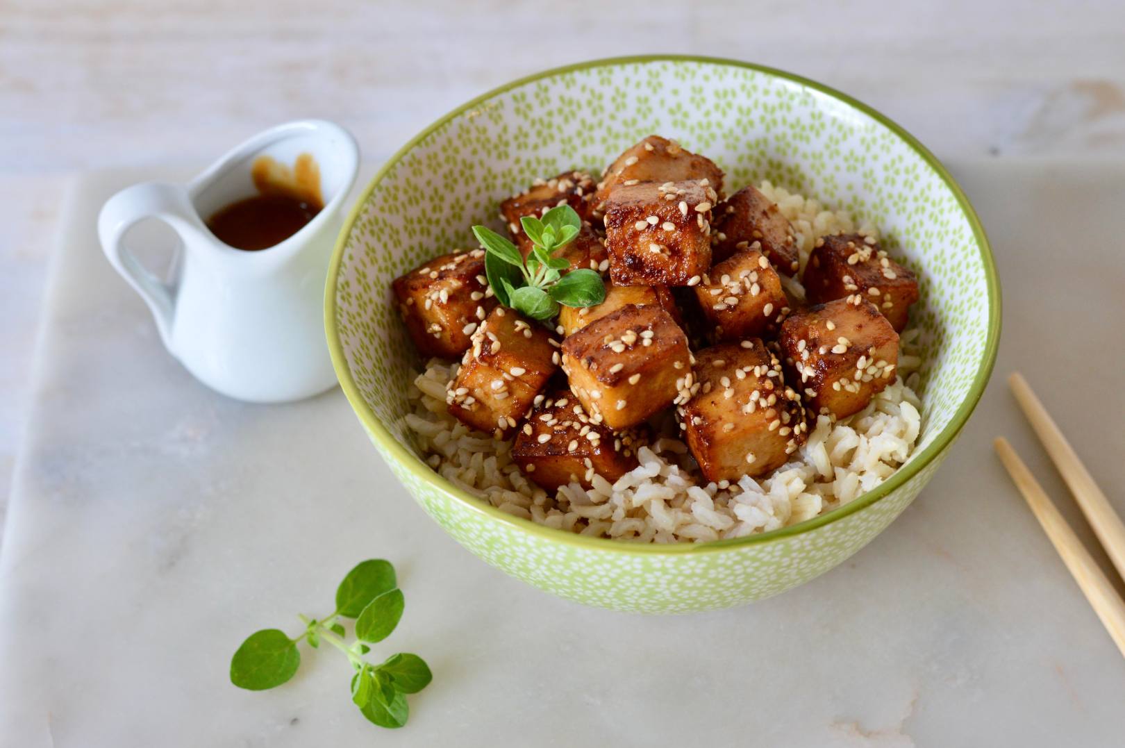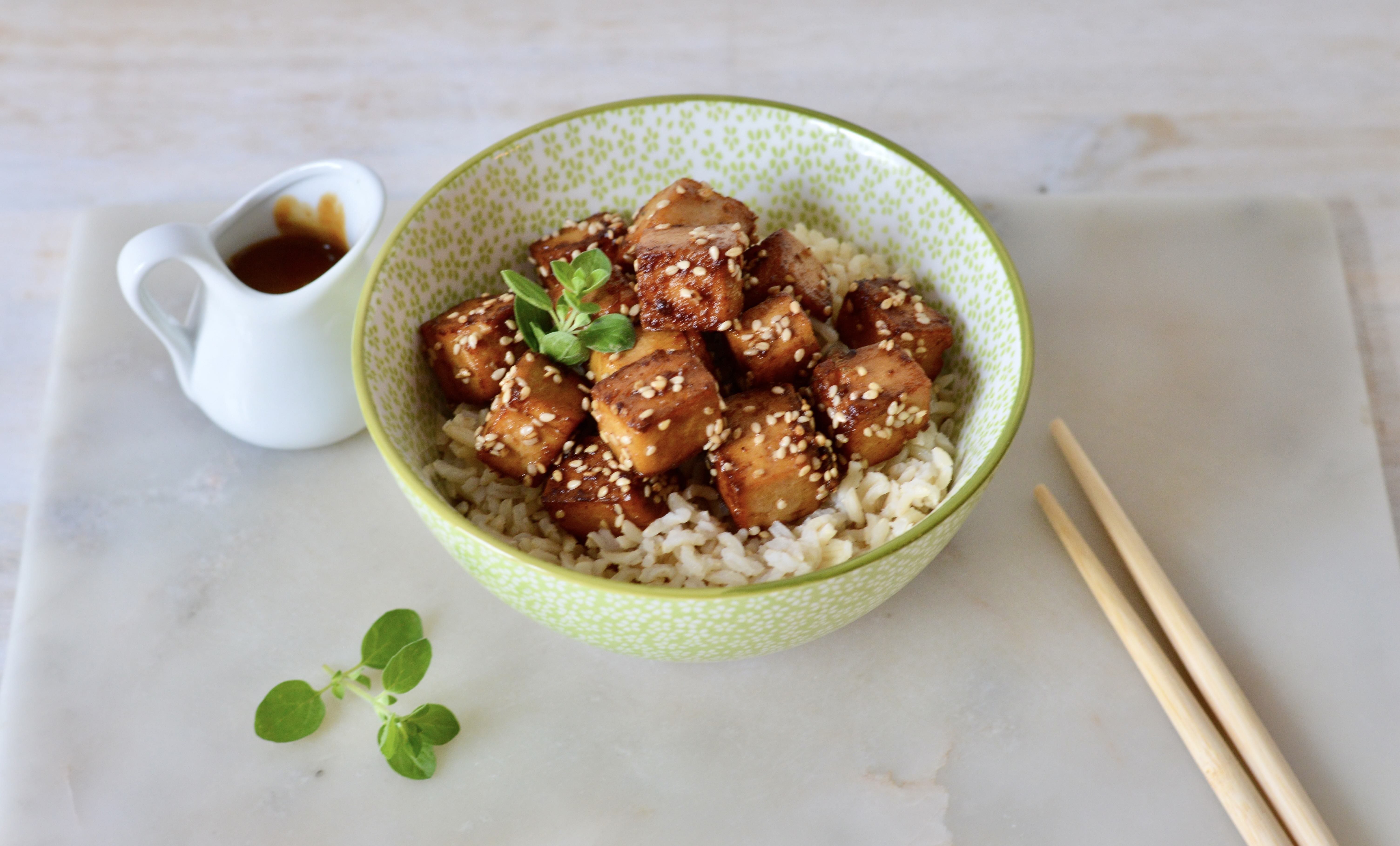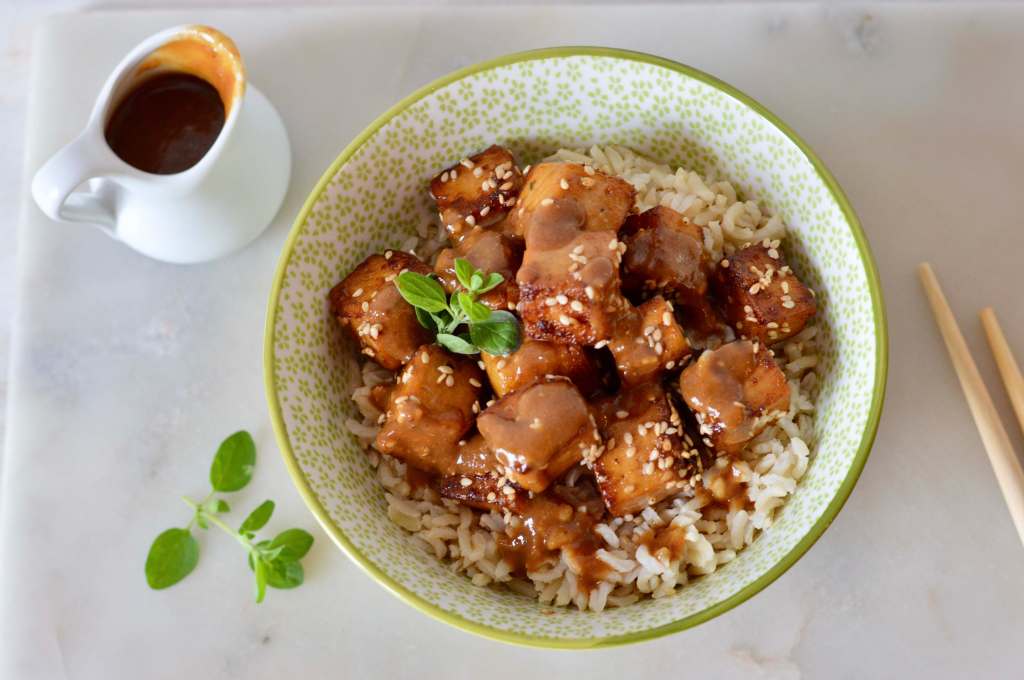 7. Heat up leftover marinade in microwave and set this on the side in a small serving bowl or pot. Serve tofu in deep bowls on cooked rice or noodles and/or vegetables. Drizzle the heated marinade on serving.
