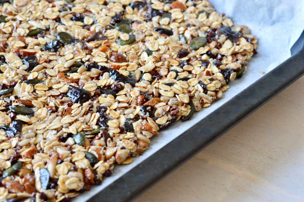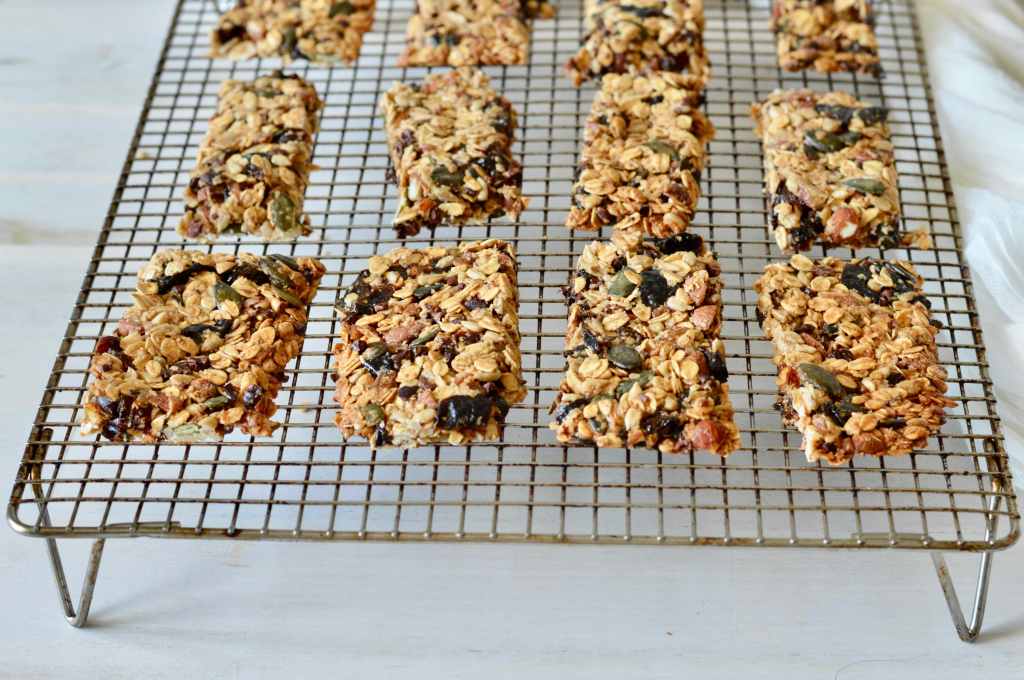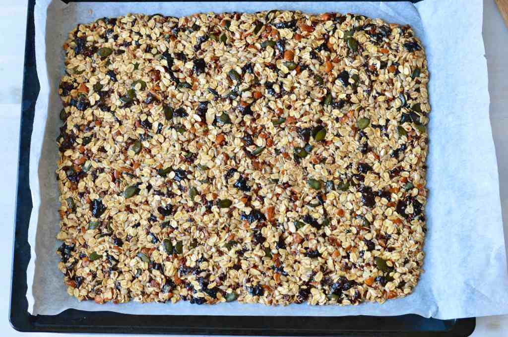 To give them a crunchy texture, I added a tablespoon of melted coconut oil and baked them for 25 minutes. The prunes and maple syrup provide natural sweetness and help bind the bars together.