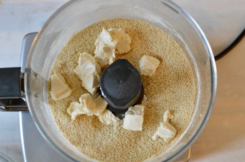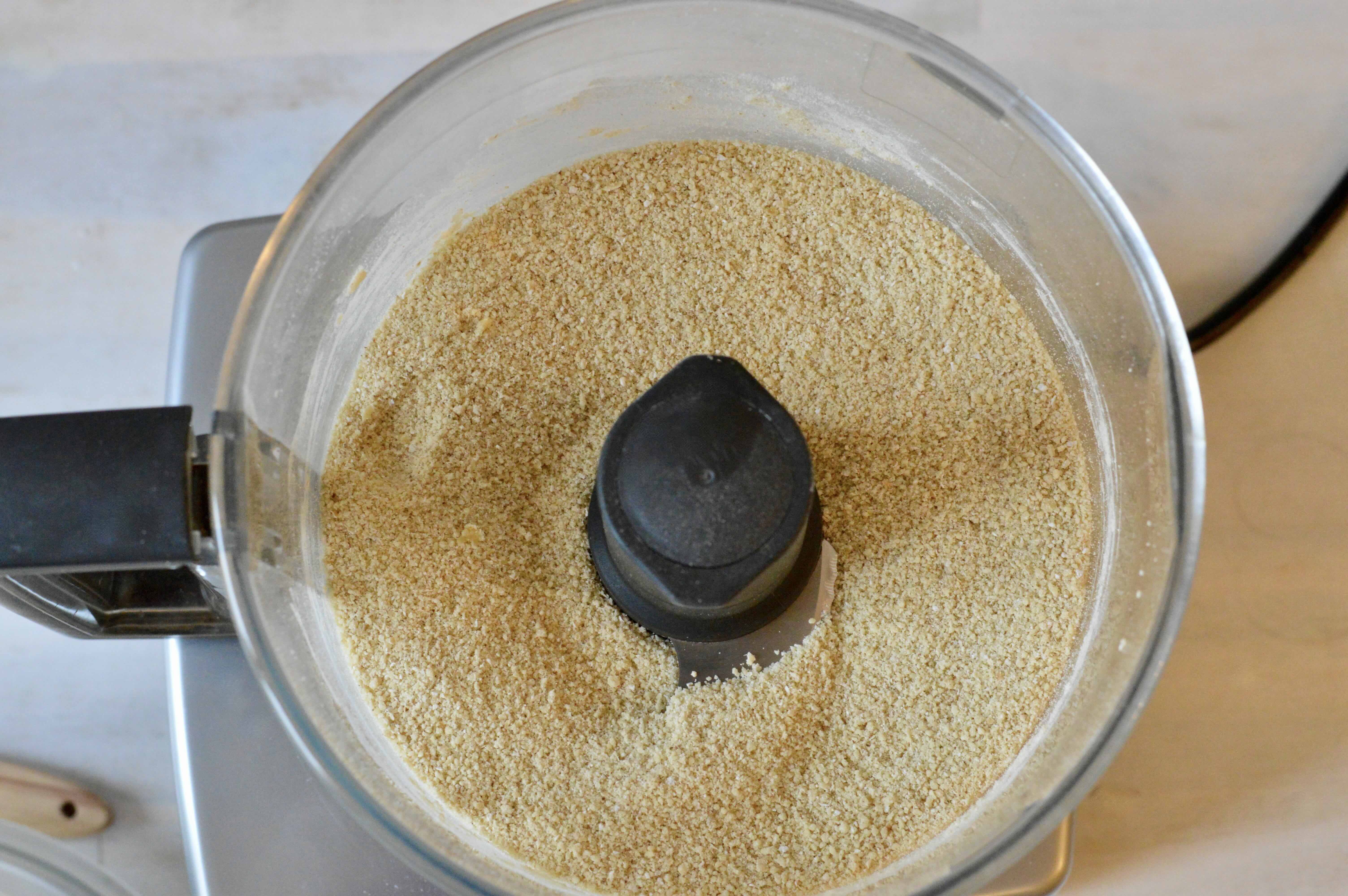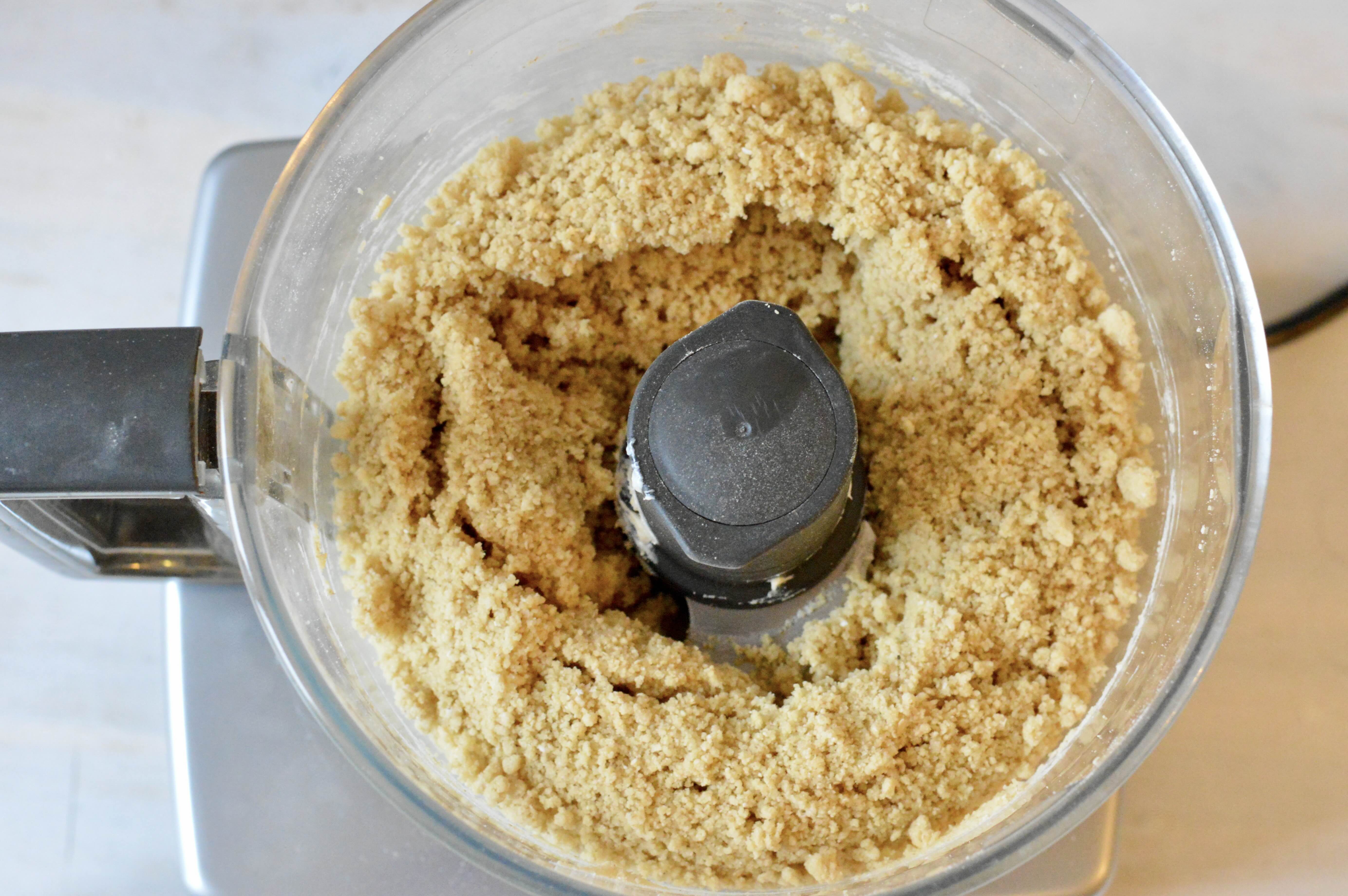 The crust comes together quickly in the food processor. It combines almond, oat and cassava flours, making it nutritious and easy to digest.