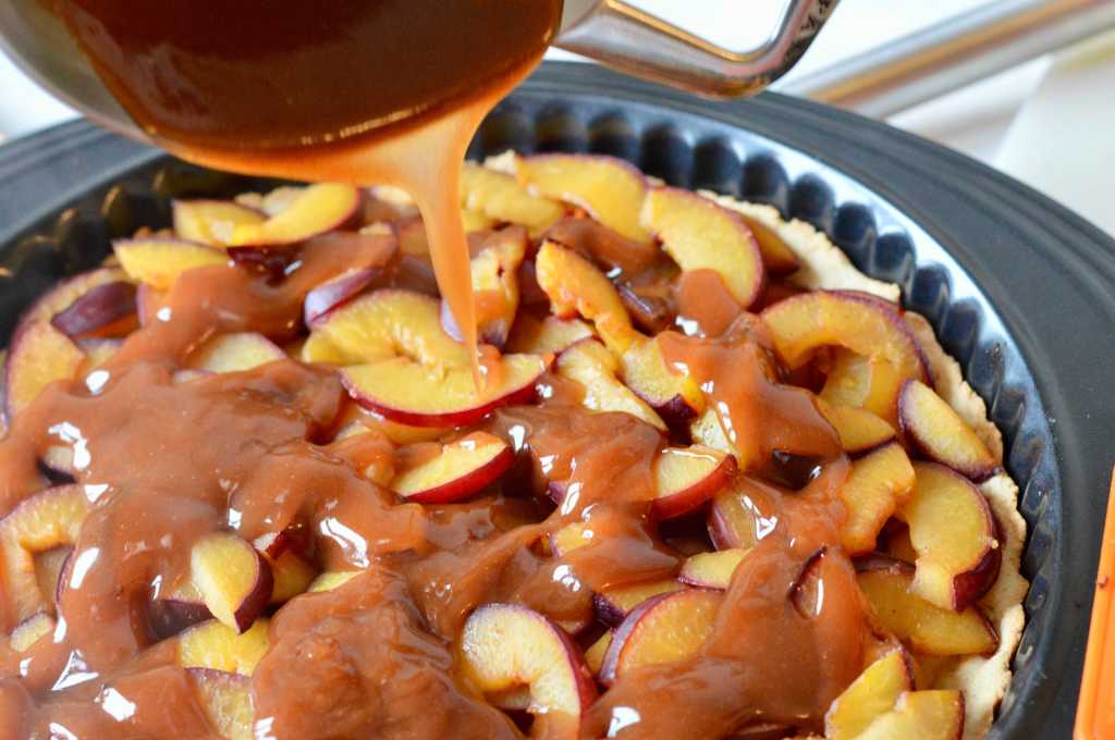 1. Prepare or slice the fruit and transfer into a big bowl. In a separate small bowl make the glaze by whisking together the maple syrup, lemon juice and zest, cornstarch and cinnamon (cinnamon gives it a dark brown colour). Pour the glaze into the fruit and toss to combine. Cover the bowl and let the fruit marinate on countertop for at least 45 minutes, tossing a few times.