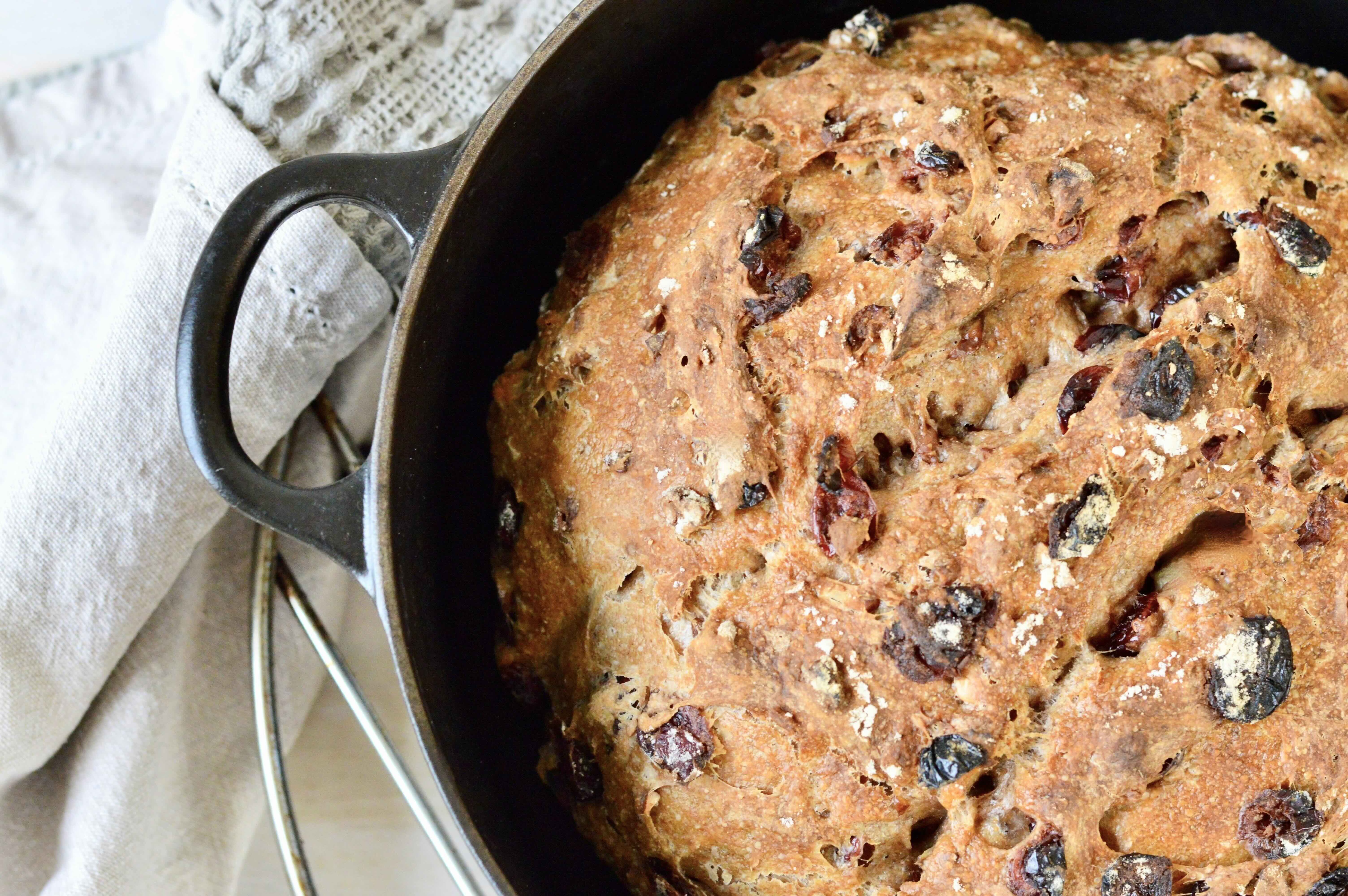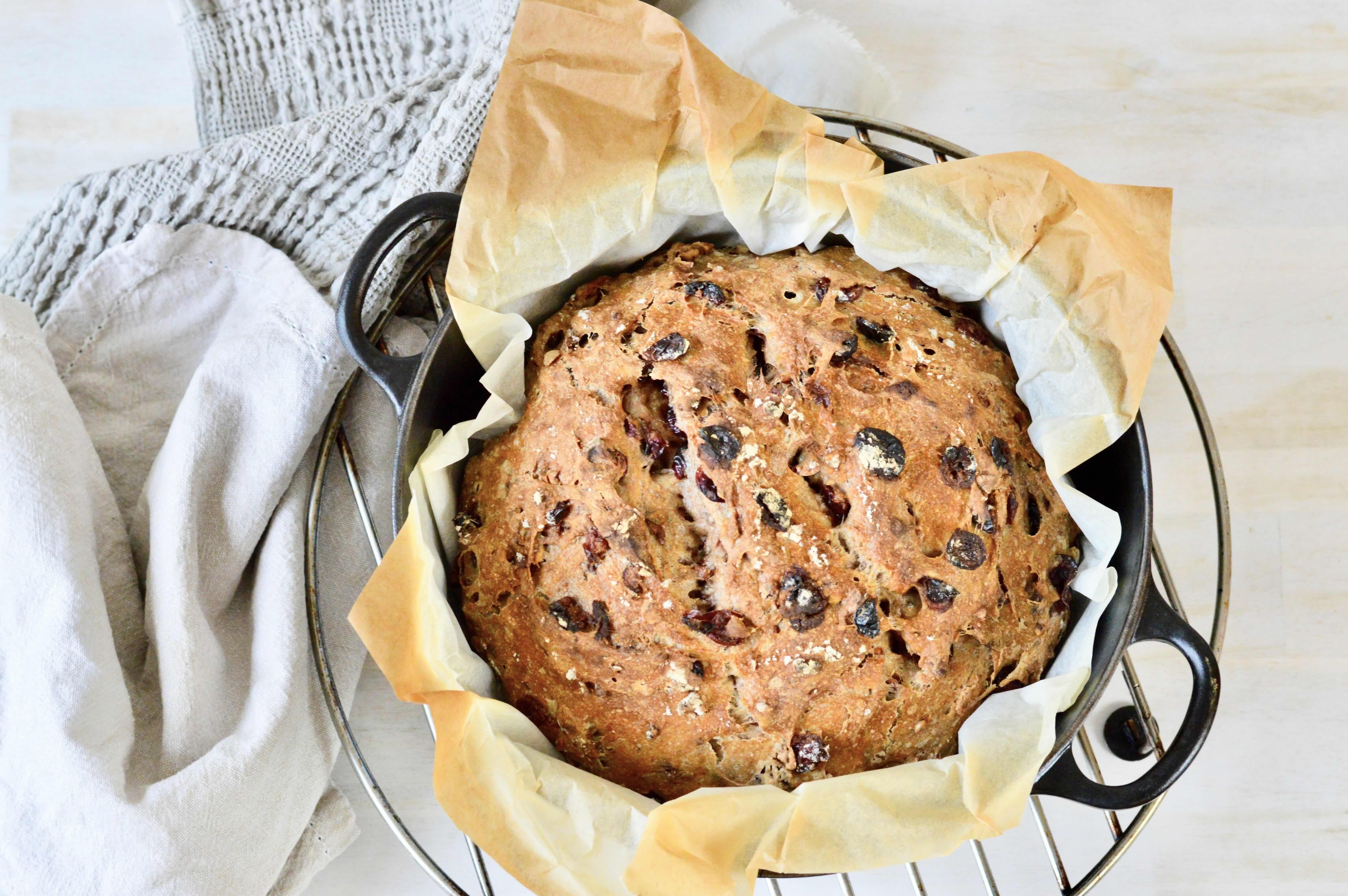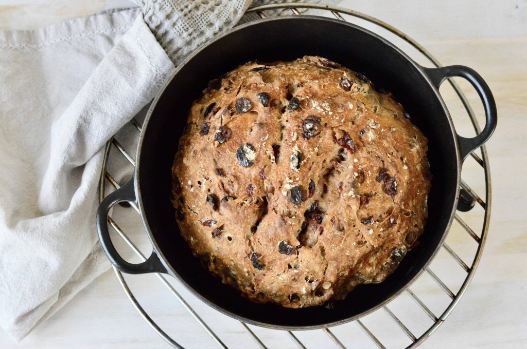 Perfect for the festive season or any time of year, this bread can be the centerpiece of your next gathering. Plain or toasted, enjoy a few slices at breakfast, alongside a hearty soup or salad, or arrange smaller pieces on a fruit and cheese platter. We’ve been particularly enjoying it with a selection of cheeses and fresh fruit!