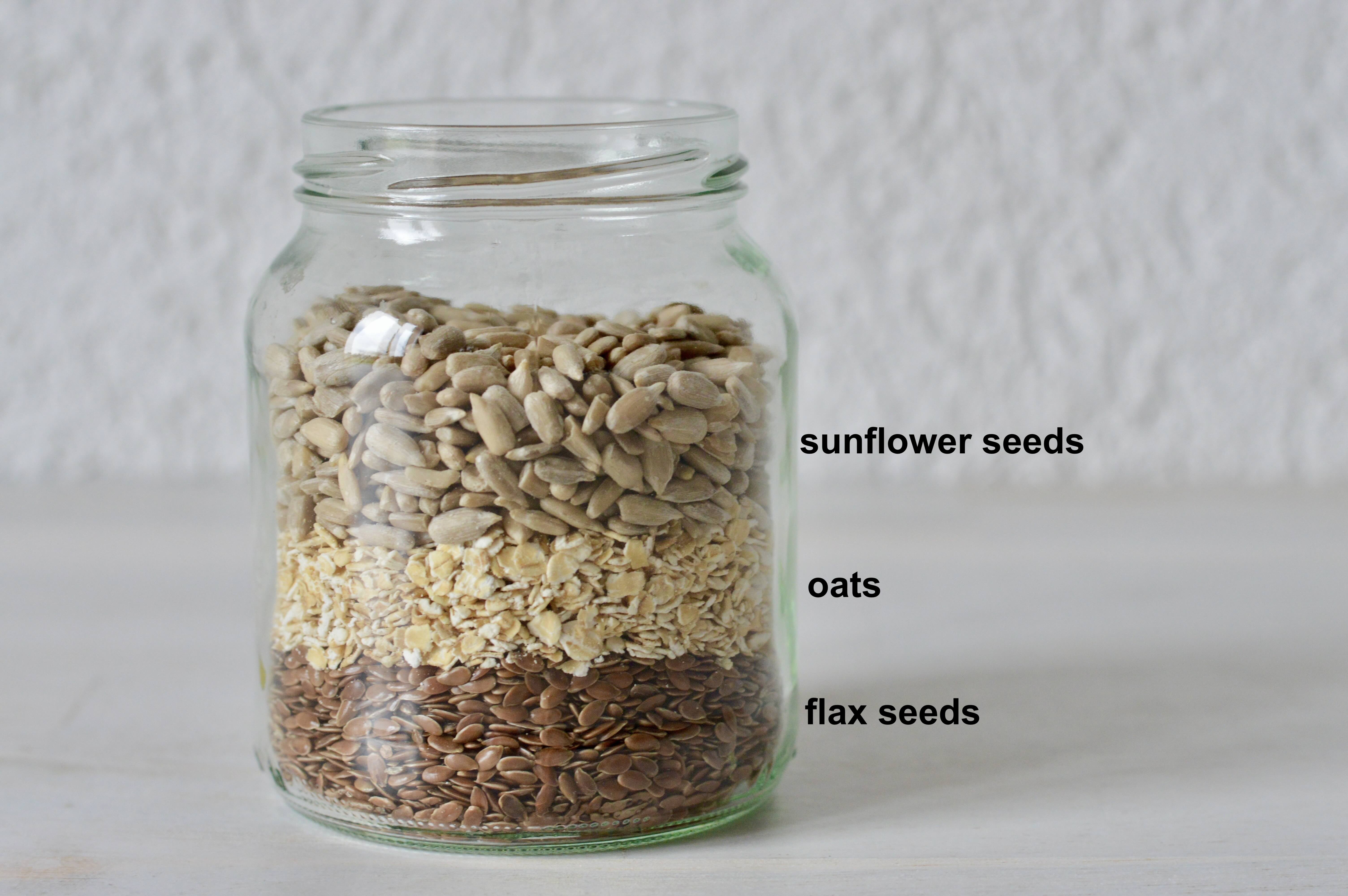 - 1 cup seeds & rolled oats (I used 56 gr raw sunflower seeds; 60 gr flax seeds; 40 gr oats) *(see notes)