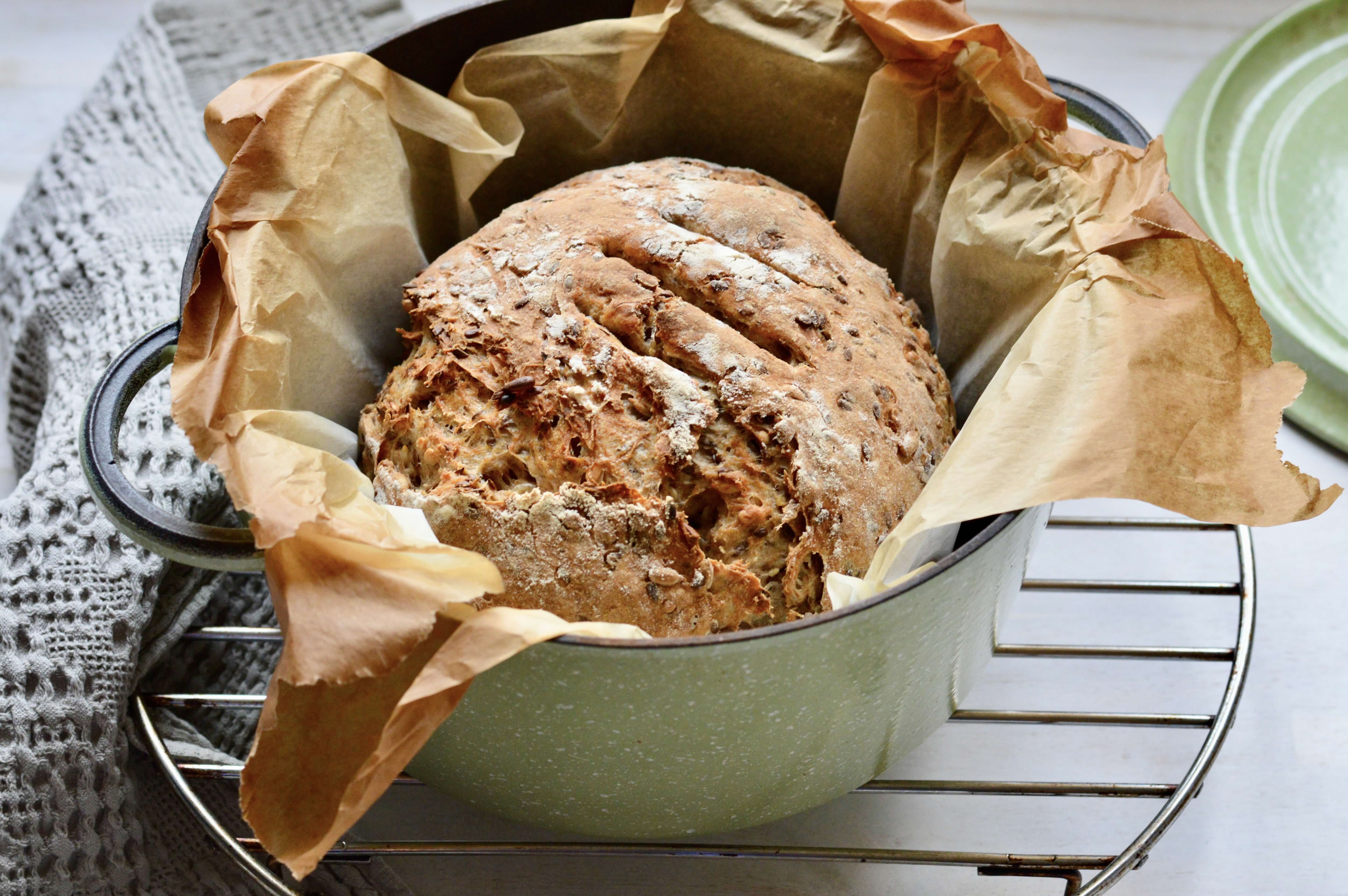 This hearty one-pot artisan bread follows the same method as my cranberry pecan yoghurt bread, but swaps in a nutritious blend of flax seeds, sunflower seeds and rolled oats. The result is equally perfect!